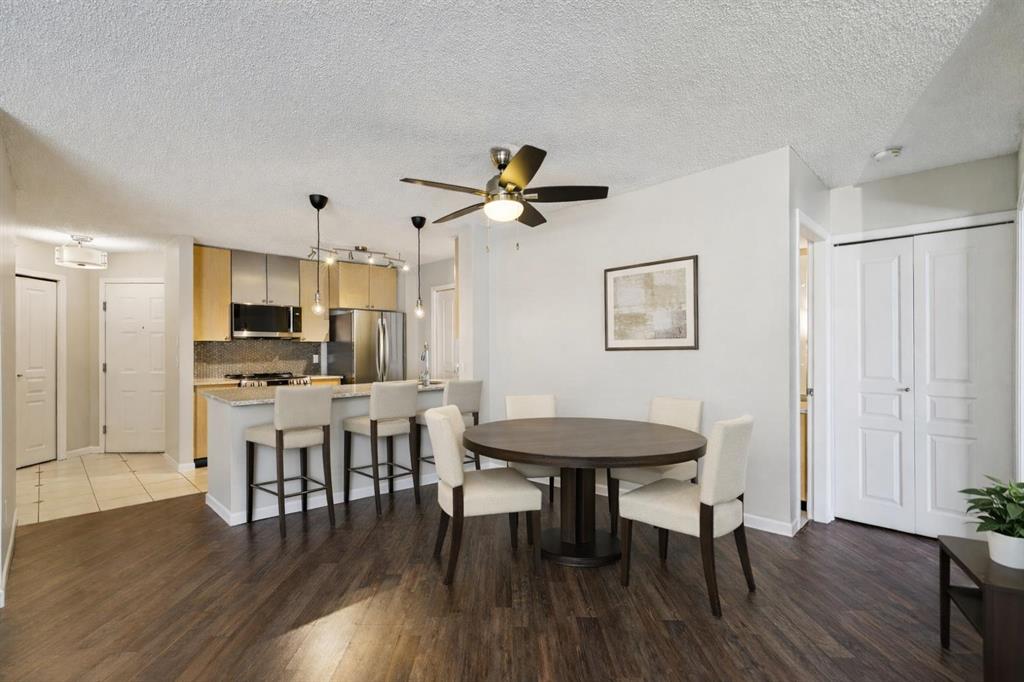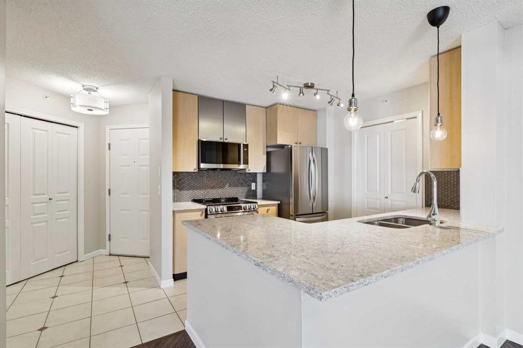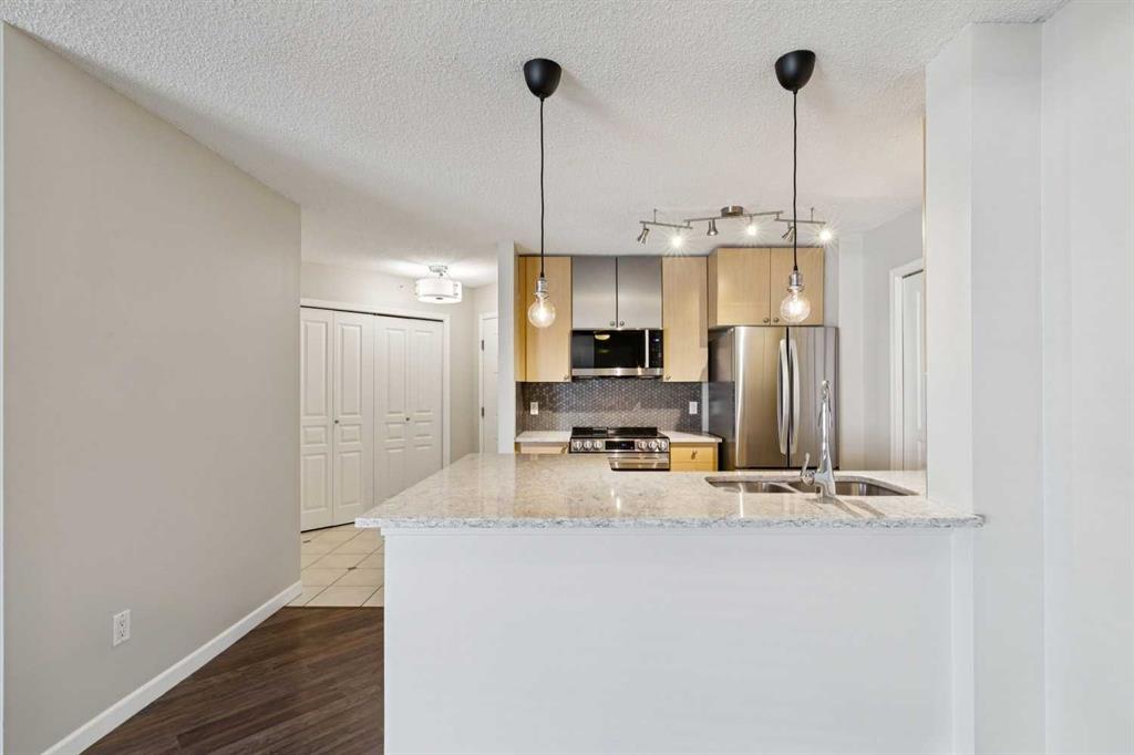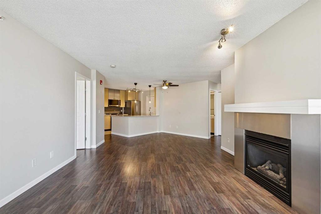 BRIGHT, MOVE-IN READY, TOP FLOOR, 2 BEDROOM CONDO ACROSS FROM MOUNT ROYAL UNIVERSITY! beautifully updated top, corner unit offers an open-concept floorplan filled with natural light, creating a warm and inviting space perfect for both everyday living and entertaining. The kitchen is a true standout, featuring brand new, never-used LG appliances, sleek quartz countertops, and ample cabinetry, ideal for cooking and hosting. Fresh paint, quartz countertops in both bathrooms, and durable laminate flooring throughout give the home a clean, modern feel. The layout includes 2 spacious bedrooms and 2 full bathrooms, providing flexibility for roommates, guests, or a home office setup. The primary suite offers comfort and privacy with its own ensuite, while the second bedroom is perfectly positioned near the additional full bath. Enjoy cozy evenings by the gas fireplace in the living room, or step out onto the covered balcony for fresh air year-round. Added conveniences include in-suite laundry, titled underground parking, and an assigned storage locker. Located directly across from Mount Royal University, this home is perfect for students, professionals, or investors. The well-maintained building also offers great amenities including a social room and fitness centre, adding even more value to this exceptional opportunity.