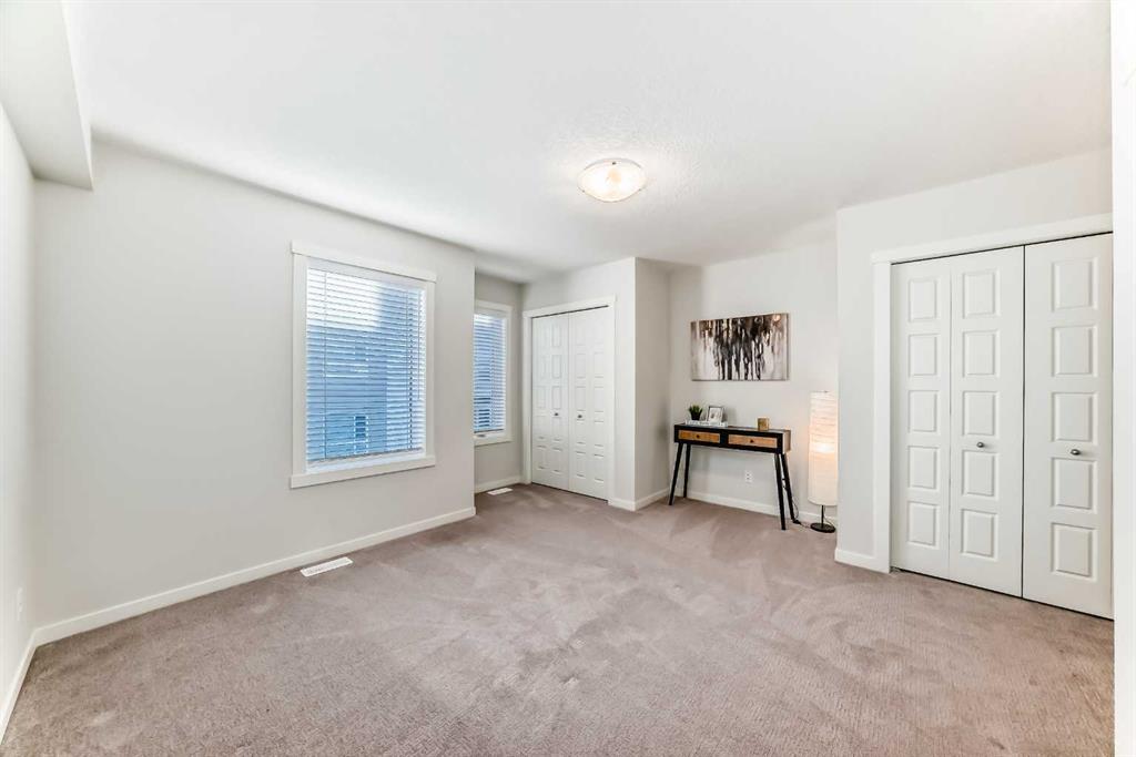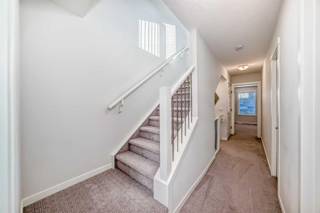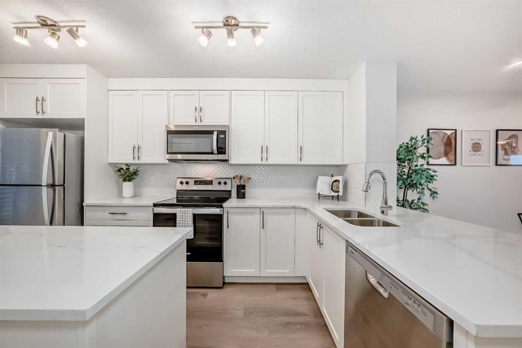 Meet your elevated escape! This like-new, pet-friendly townhome offers chic, low-maintenance living with low condo fees and almost 1400 sq ft of thoughtfully designed space. The home features 2 spacious primary bedrooms, each with its own ensuite, plus a convenient main-floor powder room and a versatile bonus room – perfect for an additional bedroom, home office, kid’s play area, etc. The bright, modern interior of this beautiful home showcases white cabinetry and white quartz countertops throughout plus stainless steel appliances, an upgraded kitchen backsplash, and a kitchen island that adds extra storage and workspace. A breakfast bar makes casual meals easy, while a dedicated dining room is perfect for entertaining. Upgraded window coverings and a smart mix of laminate and carpet flooring will make a stylish statement that you can be proud of. The upper-floor laundry adds everyday convenience while central air conditioning keeps things comfortable year-round. Relax and finish the day on your large, private rooftop patio with mountain view – ideal for enjoying summer evenings with family and watching sunsets with that special someone. Immediate possession, Move-in ready, Immaculate condition, located in amenity rich Seton and packed with an array of lifestyle perks, this home truly lives large!