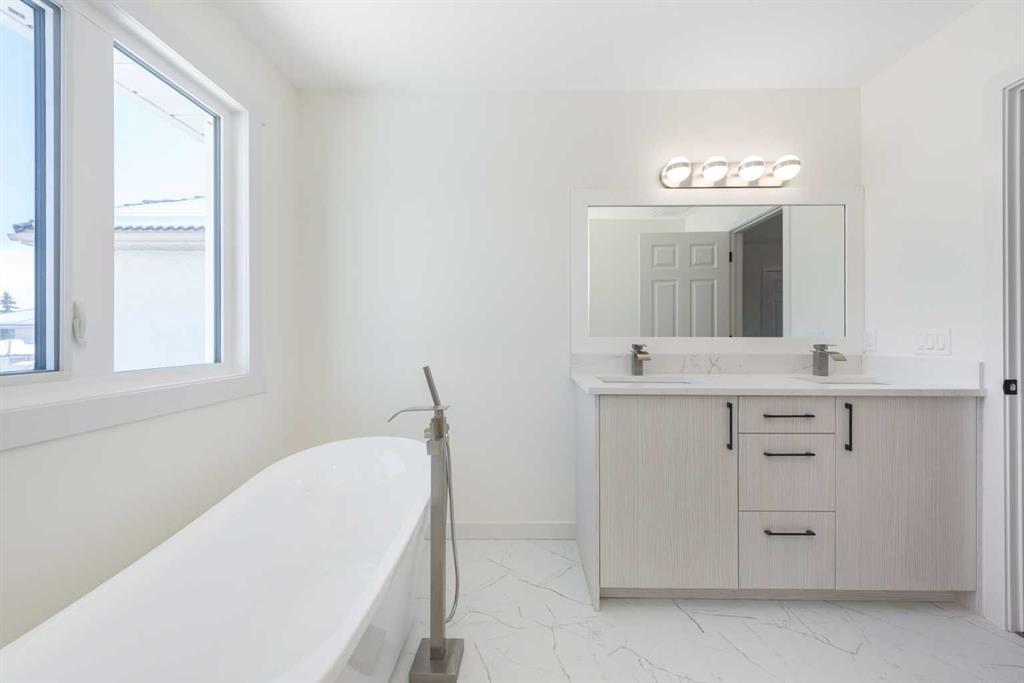 create elegant spaces for entertaining, while the cozy family room just off the kitchen offers the perfect everyday gathering space. A rare main-floor bedroom with its own 3-piece ensuite provides excellent flexibility for guests, extended family, or a private home office. A convenient 2-piece powder room completes the main level. Upstairs you’ll find a spacious primary bedroom retreat featuring a large, modern ensuite, along with two additional generously sized bedrooms and a full bathroom, creating a functional and comfortable upper level for family living. The fully developed basement adds around another 1,000 sq.ft. of additional living space, including two more bedrooms, a full bathroom, and plenty of storage, making it ideal for teenagers, guests, or extended family. Extensive upgrades make this home feel like new, including a new roof (2026), triple-pane windows, high-efficiency furnace, new water heater (2025), brand new kitchen and bathrooms, new appliances, and no carpet throughout. The west-facing backyard fills the home with natural light and features a large deck perfect for relaxing or entertaining in the evening sun. An insulated double attached garage and generous storage space complete the home. Located in one of NW Calgary’s most desirable and established communities, close to top-rated schools, parks, golf, shopping, and major routes, this beautifully renovated home offers an outstanding opportunity to own in The Hamptons.