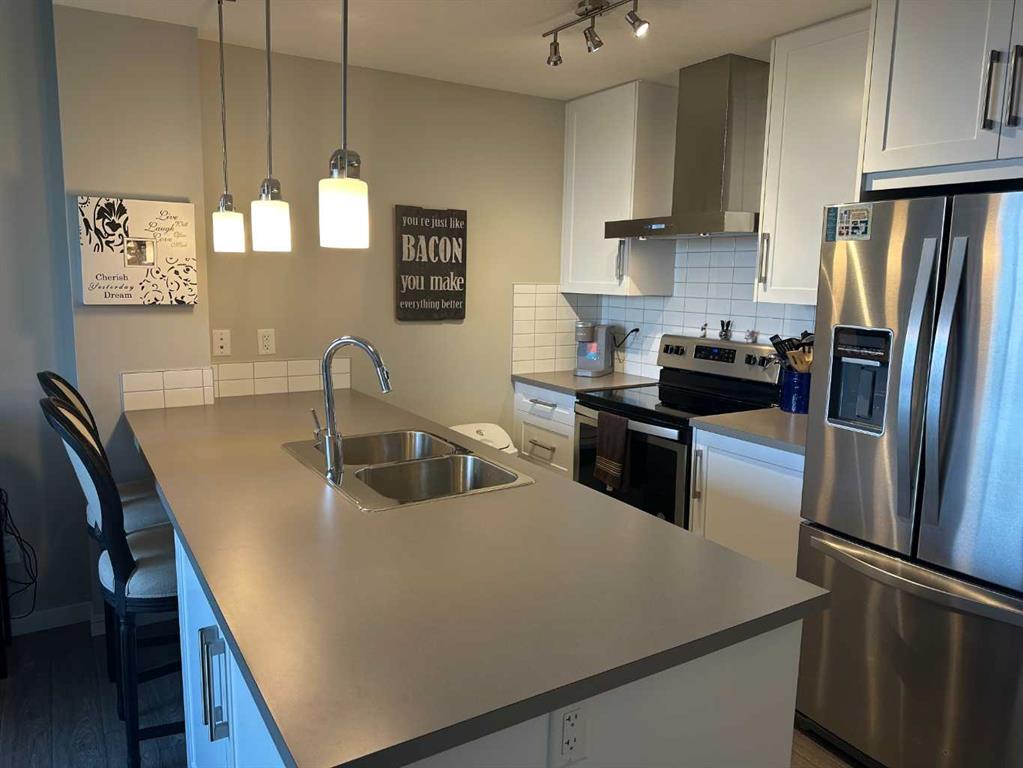 Welcome to the Crown Jewel of Mahogany Lake – Westman Village! This is Calgary’s First Resort-Style Lakefront Community complimented by the 40,000 sq. ft. Amenity Centre which will definitely impress those that appreciate the finer things in Life! Welcome to this exceptional one-bedroom, one bathroom home with in-suite laundry, a gorgeous kitchen with a breakfast bar which is open to your comfy cozy living room and it’s all tastefully appointed with neutral tones and is in move-in condition. There are stainless steel appliances, it has air-conditioning and a titled underground parking stall. This lovely home has the perfect location – it’s located in Calligraphy I and it overlooks the interior Courtyard which boasts views of Mahogany Lake, the central fountain with reflecting pond, play area for the kids, a relaxing sun-drenched area for reading and enjoying the sun and later on in the day relax in front of the comfortable covered fire pit! From your private balcony, enjoy the views and when you’re craving a special meal and experience, look down just past the fountain and there it is Chairman’s Steak House! A short stroll around this amazing community will leave you with wanting nothing – everything is at your finger tips, shopping, restaurants, coffee shops, Alvin’s Jazz Club, numerous boutique shops, medical, dental, optometry and daycare. Westman Village is more than a condo – it’s an unmatched lifestyle just waiting for You!