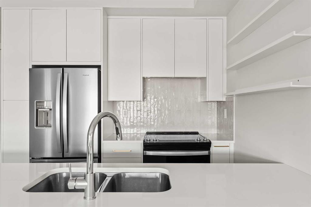 ALL FURNISHINGS INCLUDED! Move in TODAY! Welcome to Capella in the award-winning University District—where modern luxury, thoughtful design, and unbeatable convenience come together in one exceptional home. This beautifully appointed residence showcases a spacious, open-concept floorplan enhanced by elegant luxury vinyl plank flooring and expansive windows that frame views of Capella’s serene, landscaped courtyard. The gourmet kitchen is designed for both style and function, featuring full-height cabinetry, quartz countertops, and an oversized peninsula with seating for four—perfect for morning coffee, casual dining, or entertaining guests. The bright bedroom overlooks the private balcony (w/gas bbq hookup) and the lush courtyard below, offering a peaceful retreat at the end of your day. A spa-inspired 3 pce bathroom elevates daily routines with quartz countertops, a chic tile backsplash, an oversized mirror, and a sleek floating shelf for additional storage and style. Built with above-and-beyond sound attenuation, this home provides exceptional quiet and comfort—allowing you to fully enjoy the tranquility of the surrounding green space. Capella’s Built Green Gold certification ensures high energy efficiency and long-term cost savings, delivering a home that feels as smart and sustainable as it is luxurious. Residents of Capella enjoy premium amenities including secure underground parking, a private storage locker, ample visitor parking, and a fully equipped fitness centre. All of this is located in the heart of University District, one of Calgary’s most vibrant and walkable communities. Steps from your door, you’ll find trendy restaurants, cafés, boutique shopping, fitness studios, grocery stores, a movie theatre, and everyday conveniences. The Alberta Children’s Hospital, the University of Calgary, and an abundance of parks and pathways are all just moments away.