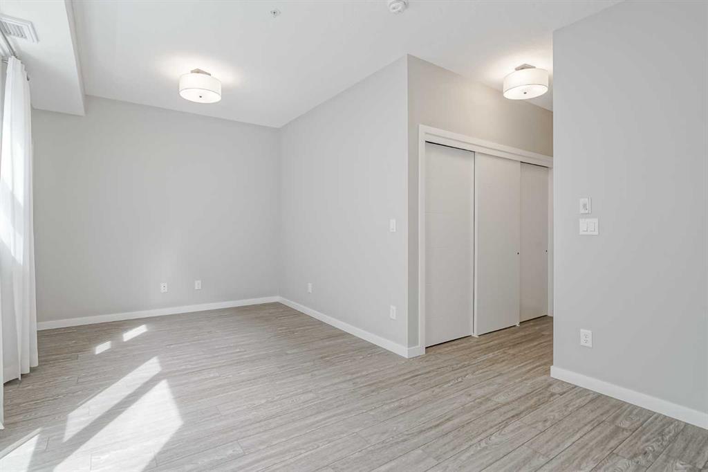 EXPERIENCE ELEVATED LUXURY LIVING AT WESTMAN VILLAGE-Welcome to an exceptional opportunity in the prestigious, resort-style community of WESTMAN VILLAGE-a rare offering designed for those who value sophistication, comfort, and an unparalleled lifestyle on Calgary’s largest and most celebrated lake. FORMER SHOWSUITE at WESTMAN VILLAGE, this exquisite corner-unit 2-bedroom, 2-bath residence with two titled parking stalls redefines luxury condo living. Spanning 1,050 sq ft, this air-conditioned home is bathed in natural light thanks to its premium corner position and generous windows throughout. Elegant 9-foot ceilings, wide-plank luxury vinyl flooring, and an open-concept layout create an inviting sense of space and serenity. The beautifully designed modern kitchen features sleek WHITE cabinetry, quartz countertops, and a refined colour palette that flows seamlessly into the bright and spacious living area. This outdoor patio is a sanctuary and a standout feature – an ideal extension of your living space, perfect for morning coffee, al fresco dining, or sun-filled relaxation. The oversized primary suite is a true retreat, offering ample space for a sitting area or workspace, custom closets with built-in organizers, and a private 3-pc ensuite with stylish, modern finishes. The spacious second bedroom includes a walk-in closet and large window, perfect for guests, family, or versatile use with convenient access to the full, 4-pc bathroom. Additional conveniences include in-suite laundry and a large pantry/storage room, ensuring both comfort and practicality. Perfectly crafted by Jayman BUILT, this residence showcases design integrity, with triple-pane windows, and forced-air heating and cooling.