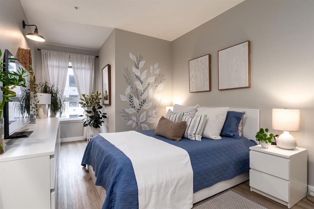 Open House on Saturday January 24th from 11am – 1pm. Picture your day beginning in this bright Bridgeland condo, where 9’ ceilings and premium vinyl plank flooring set a clean, contemporary tone. Morning light pours in as you step onto your private balcony, coffee in hand, taking in views of the quiet courtyard—perfectly set up with a natural gas line for easy summer BBQs.