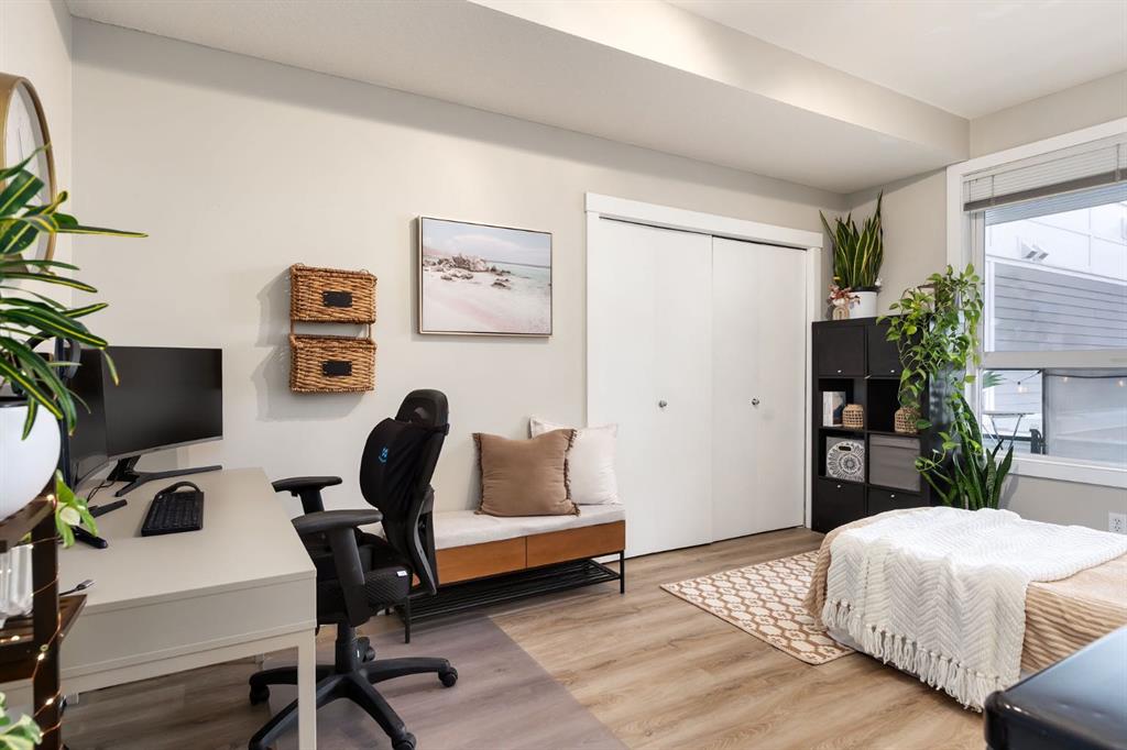 Inside, the open-concept design feels effortless, enhanced by a smart lighting system that adjusts seamlessly to how you live. The primary bedroom offers a calm, comfortable retreat at the end of the day, while the second bedroom flexes easily as a home office, nursery, or welcoming guest space.