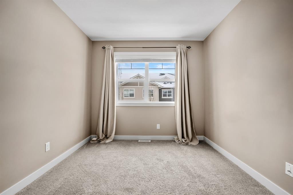 A home that instantly feels inviting, where space, light, and thoughtful design come together effortlessly in the vibrant community of Skyview Ranch. From the moment you step inside, you’re greeted by a spacious foyer area that sets the tone offering room to settle in, kick off your shoes, and truly feel right at home. The main level is designed for connection and comfort, featuring a bright open concept layout that seamlessly brings together the kitchen, living, and dining area. At the heart of it all is a spacious kitchen featuring ample cabinet storage and a large central island with a breakfast bar perfect for everything from quick morning coffees to hosting friends. Overlooking the expansive living and dining area, this open concept creates a seamless flow that’s ideal for both entertaining and everyday life. Step outside through the sliding doors onto your private balcony—perfect for summer BBQs and relaxing evenings with family and friends. A tucked away 2 piece bath completes this level with added convenience. Upstairs, you’ll find a thoughtfully designed layout with a spacious primary bedroom featuring a walk-in closet and a 4 piece ensuite—your own private retreat at the end of the day. The second bedroom is impressively sized and offers flexibility for a home office, guest room, or a growing family. Conveniently located upstairs, the laundry adds to the everyday ease of living. Complete with a single attached garage and a full driveway for additional parking, this 3 storey townhouse checks all the boxes. Ideally located close to parks, walking paths, schools, everyday amenities, and major roadways. This is more than just a place to live it’s a space where your day to day feels easier, where you can host, relax, and truly enjoy coming home. Whether you’re starting your next chapter, investing in your future, or simply looking for the right fit, this home offers the lifestyle and flexibility.