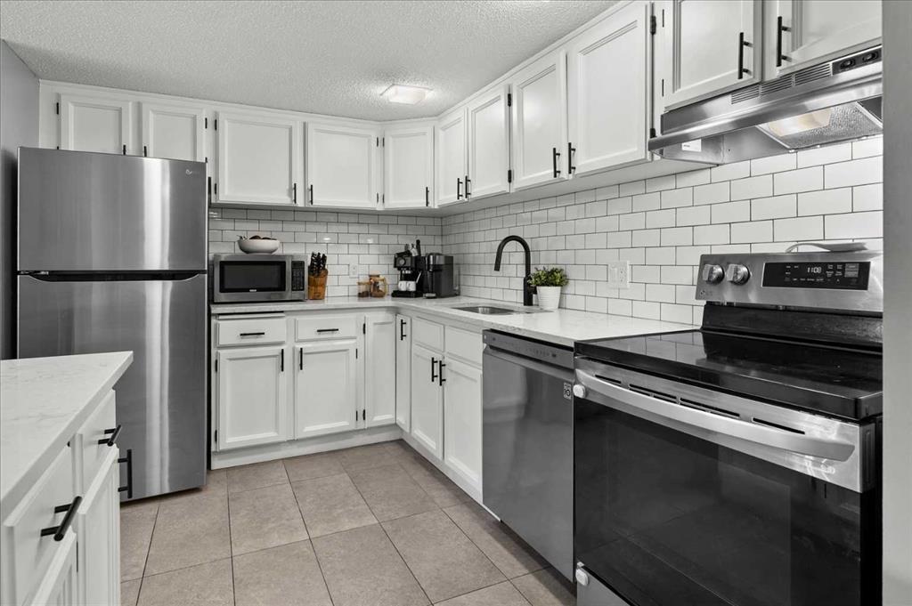 With 2 full bedrooms and 1.5 bathrooms, the layout feels anything but typical, offering separation where you want it and connection where it matters. The heart of the home, a refreshed kitchen, was tastefully updated in 2021 with new stainless steel appliances, tile flooring, quartz countertops, and a modern backsplash, creating a clean, contemporary space to cook, gather, and unwind. That same year, both bathrooms were elevated with updated vanities and fresh finishes, giving a cohesive, move-in-ready feel throughout.
