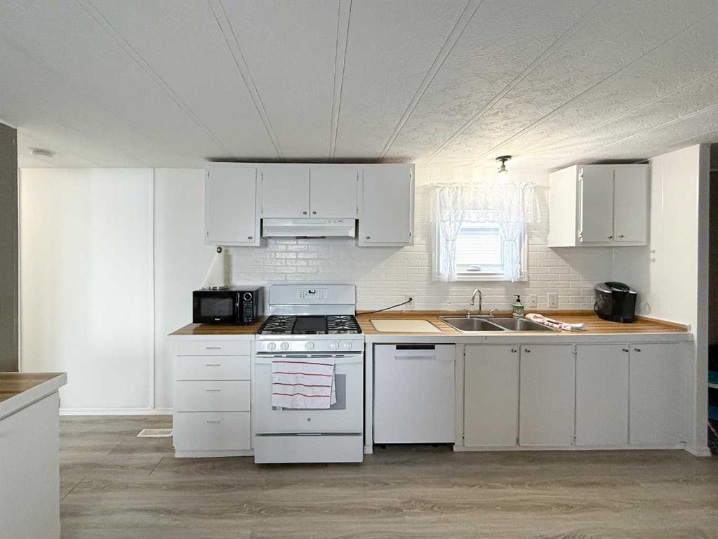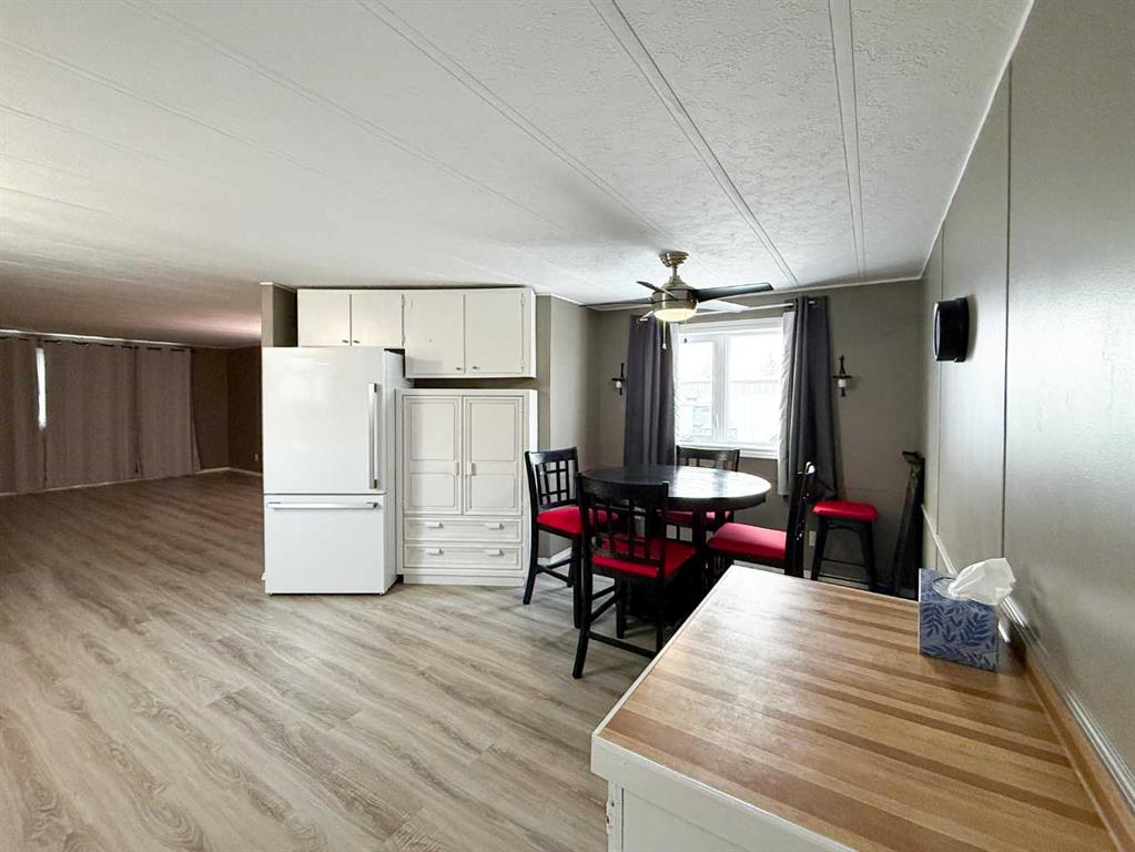 Located in a well-maintained mobile home park in the Town of Olds, this very nicely kept home offers affordable living. The property features an open-concept floor plan spanning the kitchen, living and dining areas, creating a bright and welcoming space within its 1,171 sq ft of living area. Numerous upgrades have been completed, including new windows, newer shingles, a new gas water heater, new furnace, newer appliances, and added insulation to the underbelly for improved efficiency. New vinyl plank flooring flows throughout the main living areas, enhancing the sense of continuity. The home offers three bedrooms and a 4pce bathroom, with the primary bedroom featuring a walk-in closet. Step outside and enjoy the added bonus of a private deck, perfect for relaxing. A fantastic opportunity to own a move-in-ready home with thoughtful upgrades throughout.