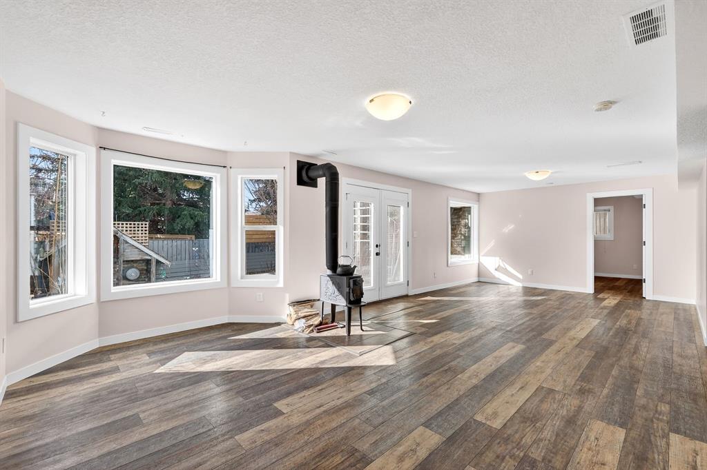 The walkout basement is bright and inviting thanks to the raised bi-level design with large windows. This level includes two bedrooms, a den, and a spacious family room with a wood-burning stove, making it ideal as a second living area for family, guests, or teenagers. Outside, the large backyard has been thoughtfully designed with eco-friendly gardens, rain barrels, and raised beds, along with several quiet outdoor nooks to enjoy the space. With a double garage, beautiful yard, mountain views, and an excellent location, this home offers a wonderful opportunity in one of Okotoks’ most established and sought-after neighbourhoods.