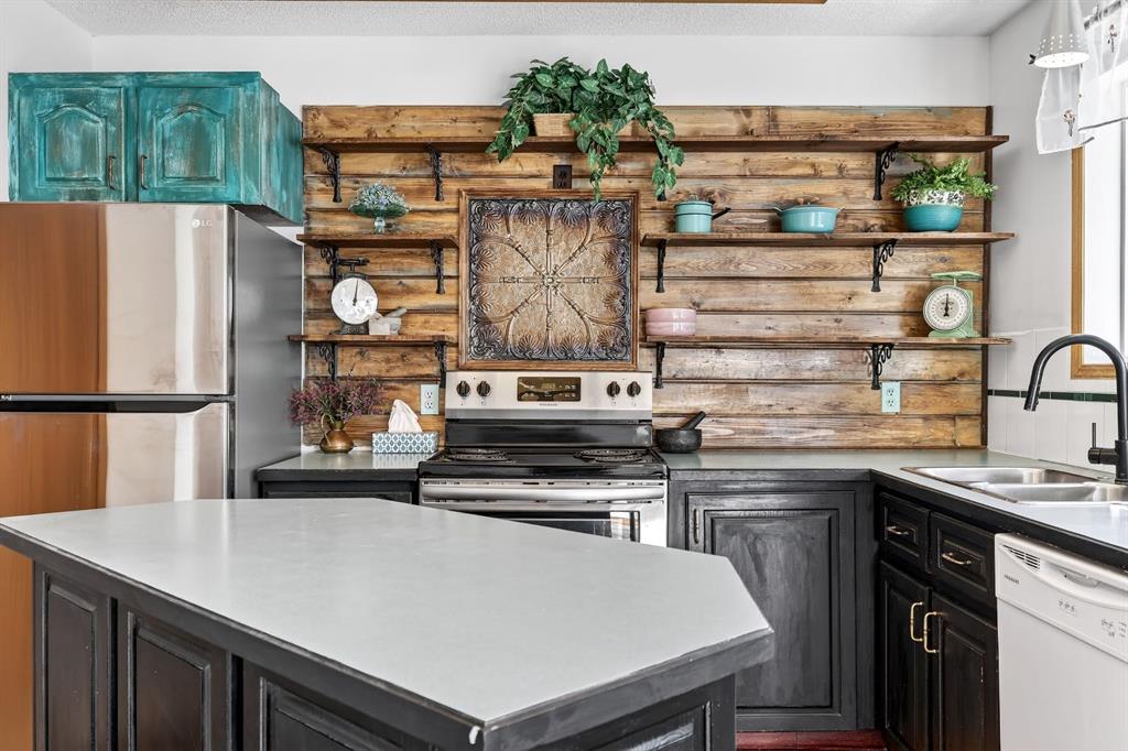 Located in Suntree Heights, one of Okotoks’ most desirable communities, this 5-bedroom bi-level home offers a fantastic combination of space, character, and location. Known for its mature trees, quiet streets, and convenient access to schools, shopping, recreation, and Calgary, Suntree Heights is a favourite for families. The bright main level features a welcoming living and dining area with large windows and a cozy feel. The kitchen has unique rustic touches and open shelving, while also offering an opportunity for buyers to update the kitchen and ensuite to their own taste. The upper deck provides beautiful mountain views, creating the perfect place to relax and enjoy the surroundings.