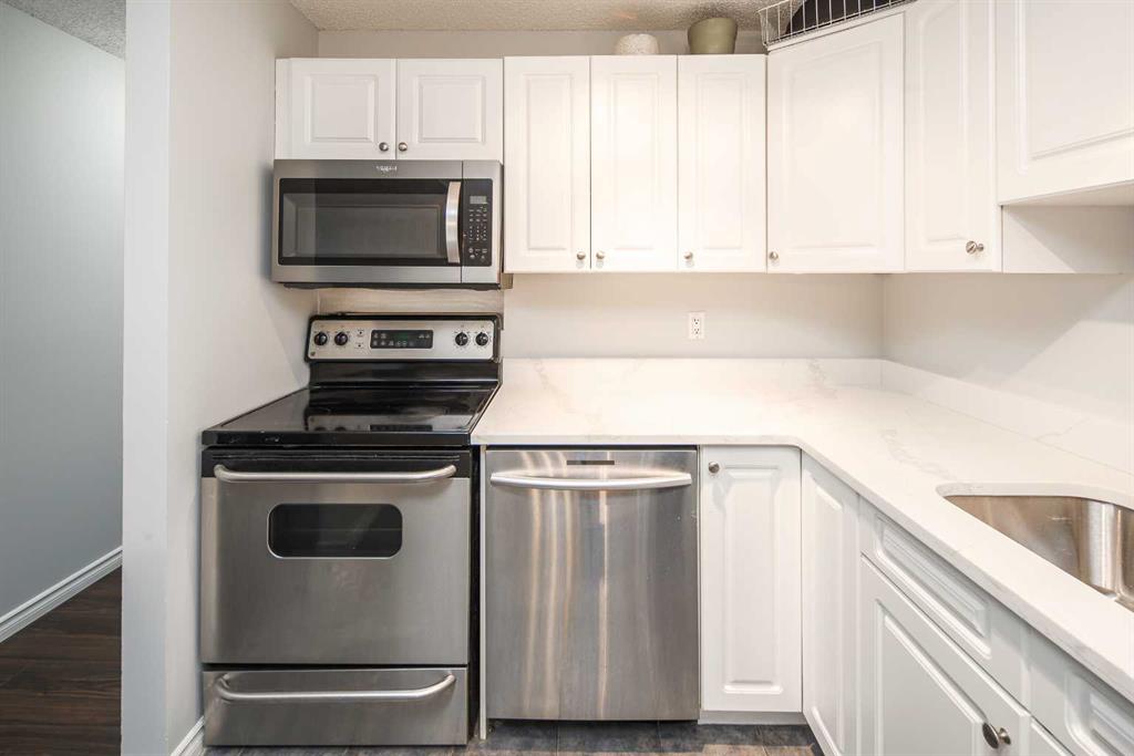 Nestled in the vibrant community of Cliff Bungalow, this spacious 2-bedroom corner unit is just steps away from all the amenities you could wish for. Downtown’s west end and commercial core are only a few blocks north, and you’re just one block from the diverse restaurants and entertainment venues of 17th Avenue. Additionally, it’s a mere 300-meters walking distance to Western Canada High School, one of the top high schools in Alberta. Upon entering, you’ll be impressed by the modern, open-concept floor plan, which soaks in natural light. The gourmet kitchen will inspire any chef, featuring stainless steel appliances, quartz countertops, stylish lighting fixtures throughout, a raised breakfast bar, and white cabinets that provide ample space. The primary bedroom boasts an updated walk-in closet with cheater access to the 4-piece bathroom. The second bedroom is generously sized, featuring a French door and plenty of space for various uses. This location offers convenient access to everything you need for daily living and leisure activities. Don’t miss out on the opportunity to make this stunning home your own—schedule a viewing today!