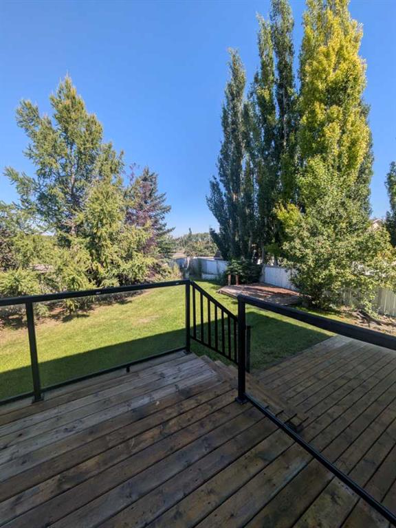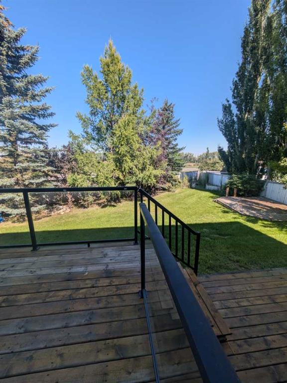 Highly desirable home in High River featuring 5 bedrooms on the upper level plus 2 additional bedrooms in the developed basement, along with 3.5 bathrooms—ideal for large or multigenerational families. The main floor offers a versatile front-facing space perfect for a home office, an oversized walk-in pantry off the kitchen, and a living room–dining room area with a convenient rough-in for a future fireplace. The spacious fenced backyard includes mature apple trees and a stunning larch tree that turns golden in the fall, along with a wide, hot-tub-ready deck and the privacy of no rear neighbours. Situated in a quiet cul-de-sac and less than an hour from Calgary with easy access to the main highway, this home provides exceptional value and comfort. Come and see for yourself!