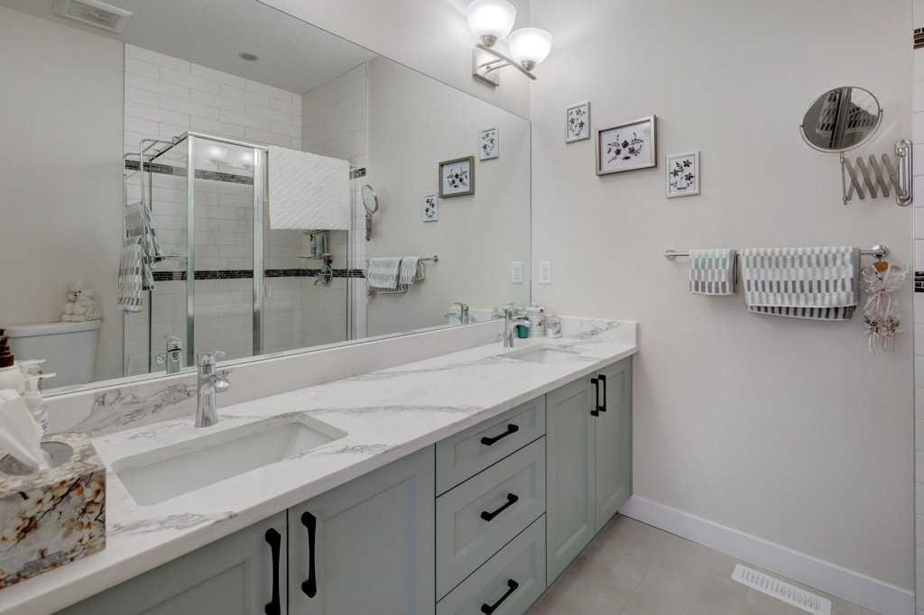 Stunning Upgraded End-Unit Townhome in Williamstown, Airdrie Welcome to this beautifully upgraded 1,529 sq. ft. end-unit townhome in the sought-after community of Williamstown. With over $50,000 in upgrades, this home combines style, comfort, and convenience in one exceptional package. Step inside to an inviting open-concept main floor highlighted by central A/C, modern finishes, and an abundance of natural light. The unique master bedroom on the main level offers privacy and ease of living, complete with a spa-inspired ensuite. Upstairs, you’ll find an additional spacious bedroom with a private adjoining family room and another full bathroom, perfect for guests or teens. The fully developed basement boasts a Third bedroom, a large rec room and another full bathroom! There’s plenty of space for everyone. The chef-inspired kitchen features quartz countertops, upgraded cabinetry to the ceiling, and a large island—perfect for entertaining. The living and dining areas flow seamlessly, while large windows overlook the peaceful green space siding the property. Outside, you’re just steps from the extensive pathways of Williamstown Nose Creek Park—perfect for walking, biking, or enjoying nature right out your door. Don’t miss this rare opportunity to own a fully upgraded end-unit, complete with CENTRAL A/C and one of the most functional and desirable layouts in Williamstown!