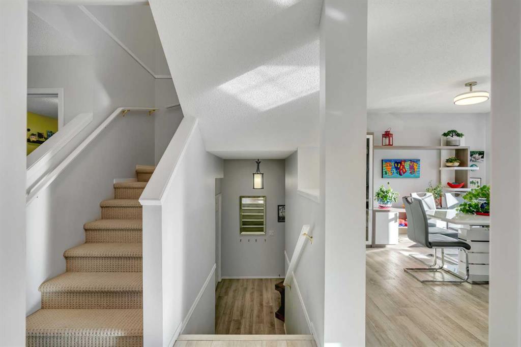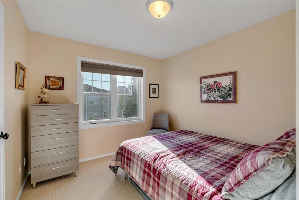 Welcome to Quinterra Townhomes in the heart of one of Calgary’s best SW communities, Coach Hill. This bright and airy unit features many recent upgrades throughout and offers an ideal layout for a variety of buyers. Its location within the complex provides an impressive amount of privacy not always found in townhome living. This townhome features an attached garage, 3 bedrooms, and 2.5 bathrooms, spread perfectly across 2 levels and just over 1400 sq ft. The main level features a large updated kitchen with quartz counters, a generous breakfast bar, and a spacious dining area, perfect for family dinners. This level also includes a large living area centred around a cozy gas fireplace, access to the private patio, and a den or office space that could easily function as a third bedroom. The upper level features 2 large bedrooms, with the primary offering a walk in closet and updated 4 piece ensuite. Not to be overlooked, the generously sized second bedroom also provides plenty of space and includes its own 3 piece ensuite. Recent major upgrades include all new windows throughout, new flooring, an updated kitchen with quartz counters, newer appliances, and updated bathrooms, making this a truly move in ready home. Quinterra Townhouses offers owners beautifully maintained pathways and mature landscaping to enjoy, with the added benefit of condo fees that includes heat through in floor heating system. The location is incredibly convenient, with nearby parks and schools, less than a 10 minute drive to the LRT station and Westside Rec Centre, and easy access to shops, restaurants, and everyday services along 85 Street and in West District just minutes away. Commuting downtown or heading west toward the mountains is simple and efficient, making this a fantastic location for a move in ready home. Please call today for a private showing.