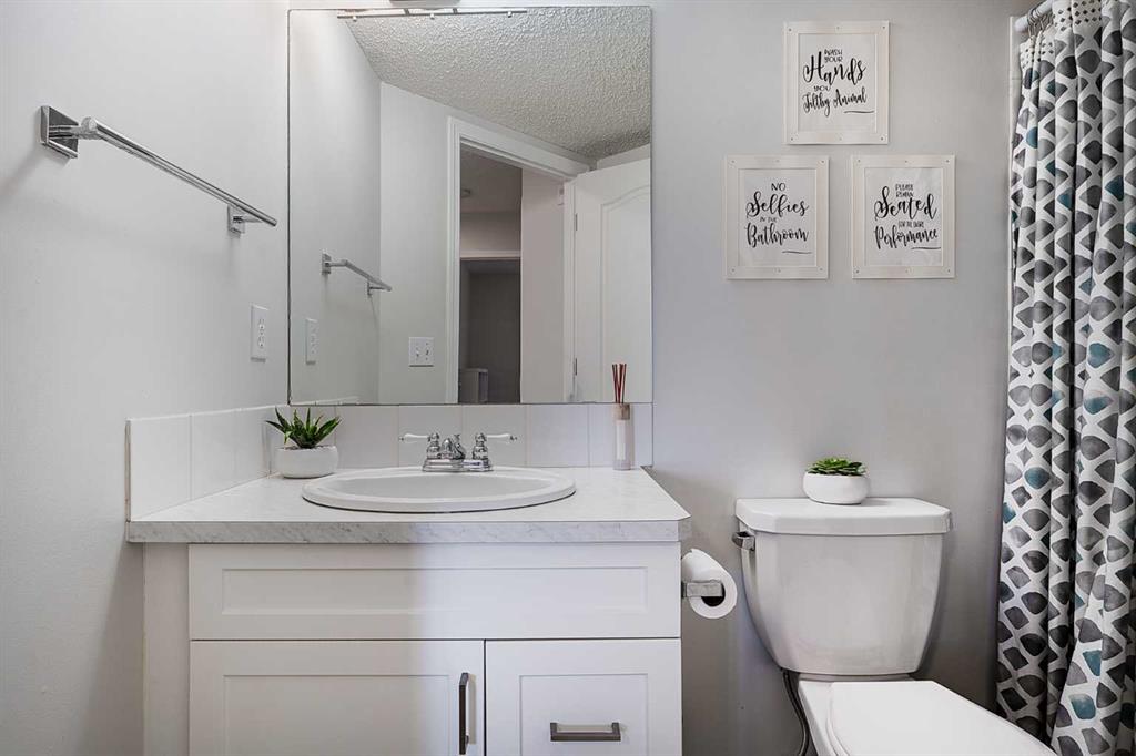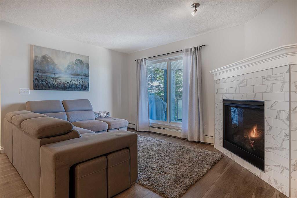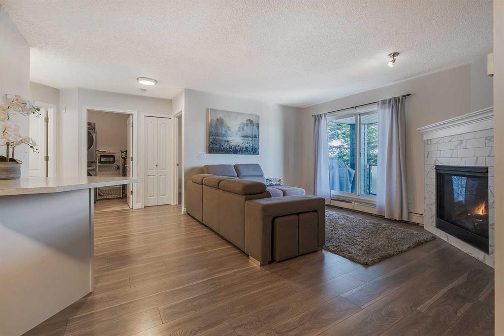 Amazing Opportunity in The Pavillions of Richmond Hill. Welcome to this bright, fully renovated and well-maintained 3rd-floor condo in the desirable community of Signal Hill. Offering 794 sq. ft. of comfortable living space, this beautiful home combines functionality with an unbeatable location. Step inside to an inviting layout where large windows fill the living space with natural light. The spacious living room, featuring a cozy gas fireplace with mantel & tile surround, leads directly to a private covered balcony – your own quiet retreat overlooking mature trees and the mountains. The kitchen is designed for convenience with new stainless steel appliances and generous counter space. The primary bedroom features a private 4-piece en-suite, while the versatile second bedroom is ideal for guests or a home office. With titled underground parking, a large private storage room, and in-suite laundry with new washer & dryer, every detail has been considered. Located within within walking distance to all the amenities like Westhills Towne Centre, wide variety of shopping, restaurants, cafes, a movie theatre, and more. With easy access to transit, downtown Calgary, and quick routes to the mountains, this location truly offers the best of both city living and outdoor adventure. Call for you private showing today!