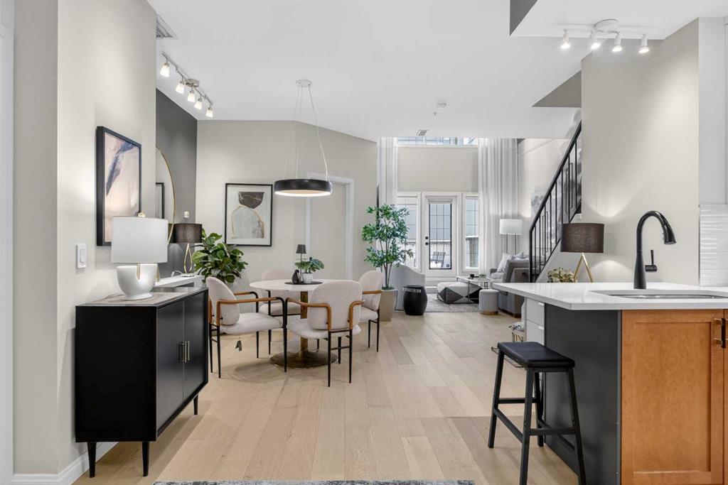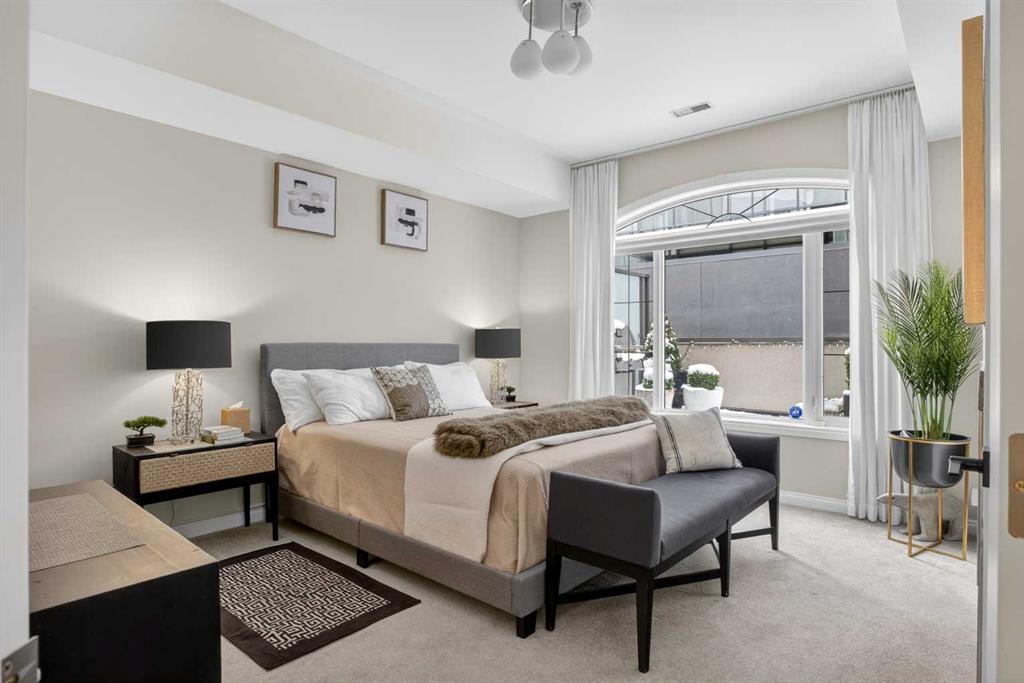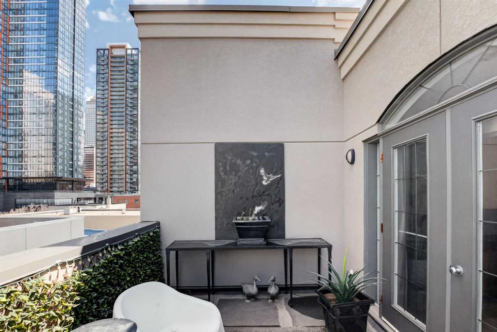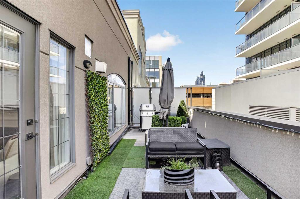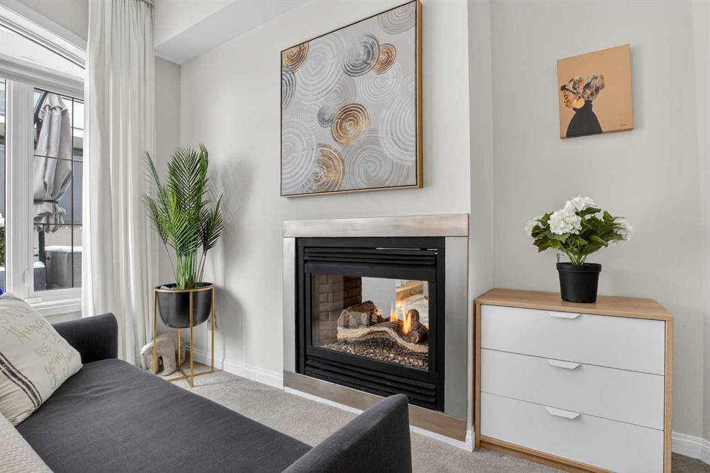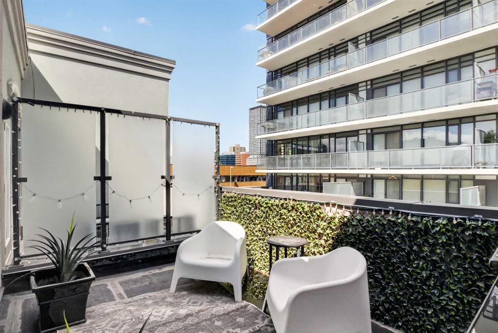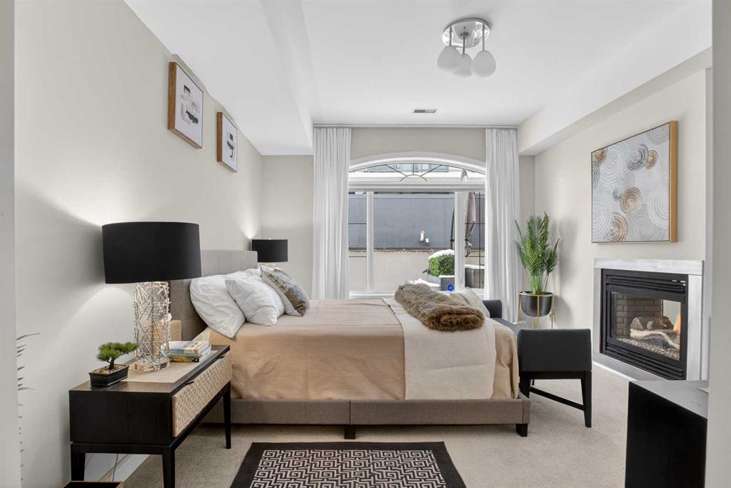 Welcome to urban living at its finest in the heart of Calgary’s vibrant Beltline. This professionally renovated and designed two storey penthouse condo offers the perfect blend of comfort, convenience, and contemporary design. This unit appeals to a variety of buyers, including those interested in short-term rentals, business/commercial use or personal occupancy. As you step inside you will immediately be greeted by a unique living space featuring 20-foot ceilings in the living area, a double sided fireplace, and large windows that fill the space with natural light. The spacious and airy living area flows seamlessly onto a private terrace with views of the Calgary tower perfect for enjoying your morning coffee or utilizing the BBQ gas line on a summer evening while entertaining your guests. The thoughtfully designed kitchen boasts modern two tone cabinetry with underlighting, sleek quartz countertops, a breakfast bar and ample storage—ideal for both everyday living and entertaining. This well-appointed unit includes dual primary bedrooms. One on the main level features generous closet space, a three-piece ensuite bath with a spa like shower and a gas fireplace. A main-level, in-suite laundry adds to the thoughtful design and everyday convenience. Completing the main level is a large, lockable storage area under the stairs, perfect for storing personal items when renting it on Airbnb. Upstairs, a spacious landing area greets you. It can serve as a bright home office leading into an oversized den with a window and closet. This diverse space makes a great 3rd bedroom or a designated space to operate a business, complete with its own private entrance. Last but not least, the primary bedroom on this level has a spacious walk in closet with organizers, a private terrace and a three-piece en suite bathroom. To top it all off this unit comes with a secured heated titled parking stall. Located just steps from Calgary’s best restaurants, cafes, shopping, and nightlife, you’ll love the walkability and energy of this sought-after downtown location while still having the space of a townhome. Whether you’re a first-time buyer, investor, business owner or looking to downsize, this condo offers exceptional value with low condo fees and diverse usage options.