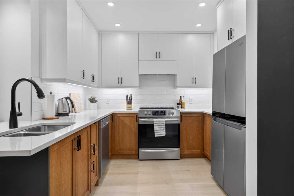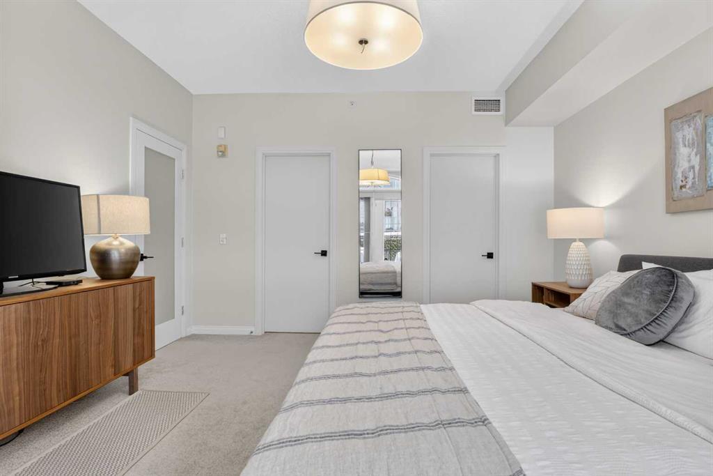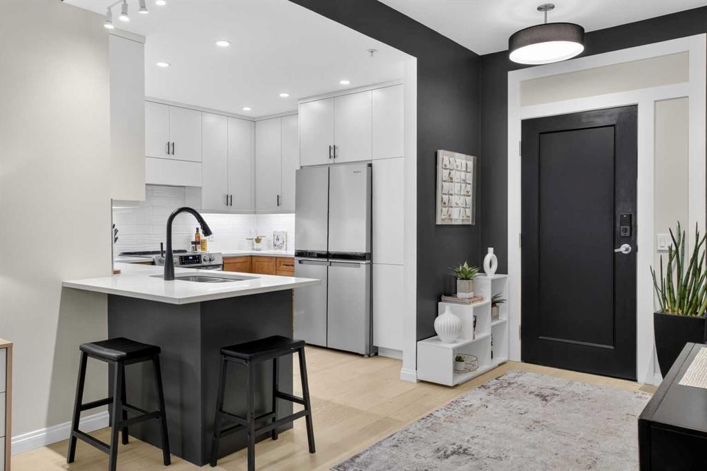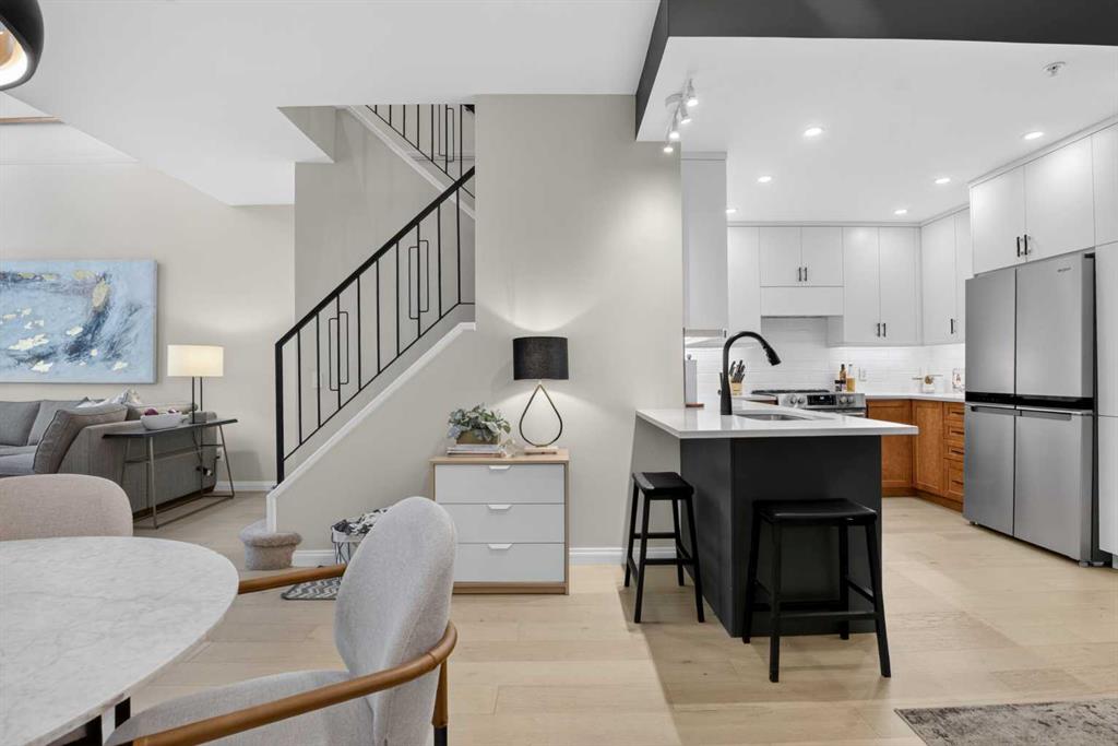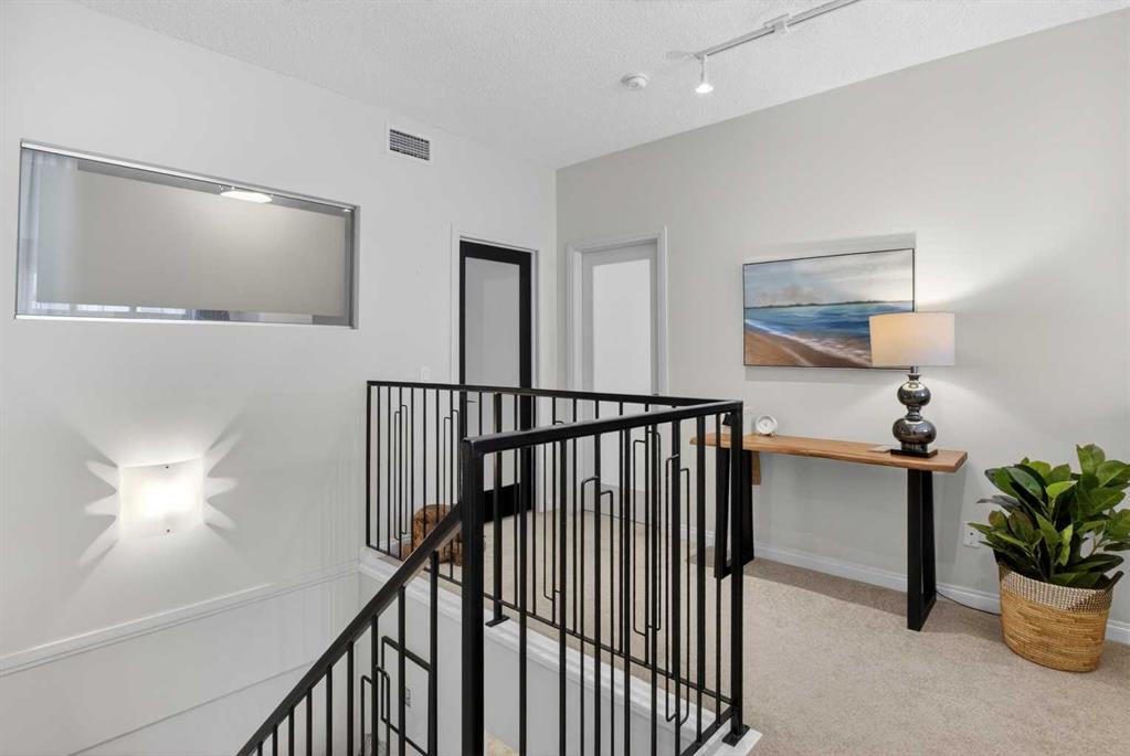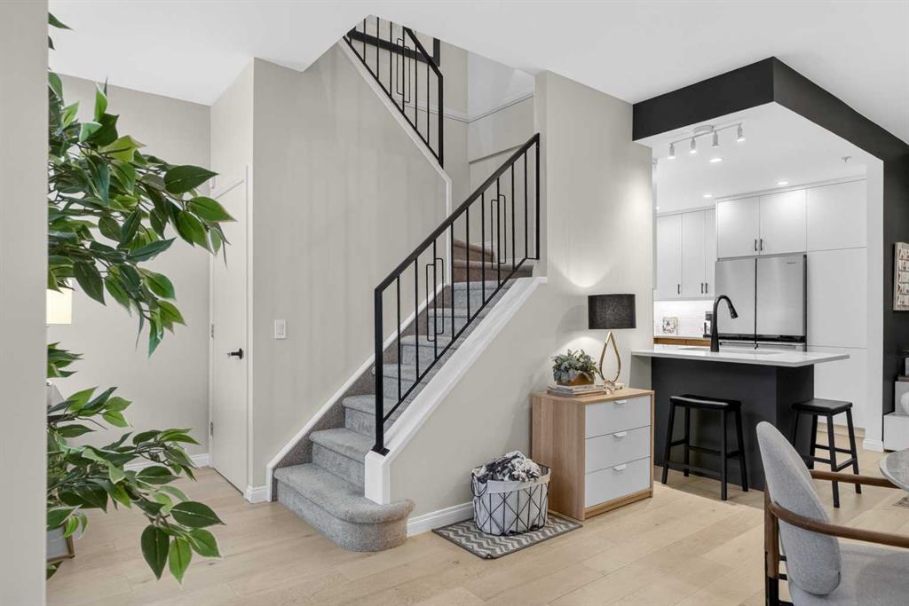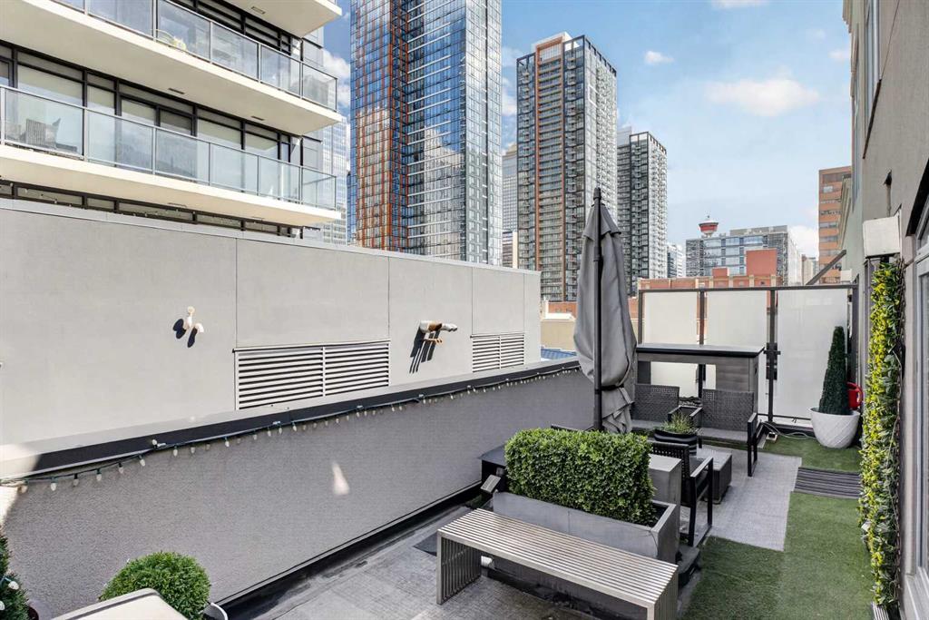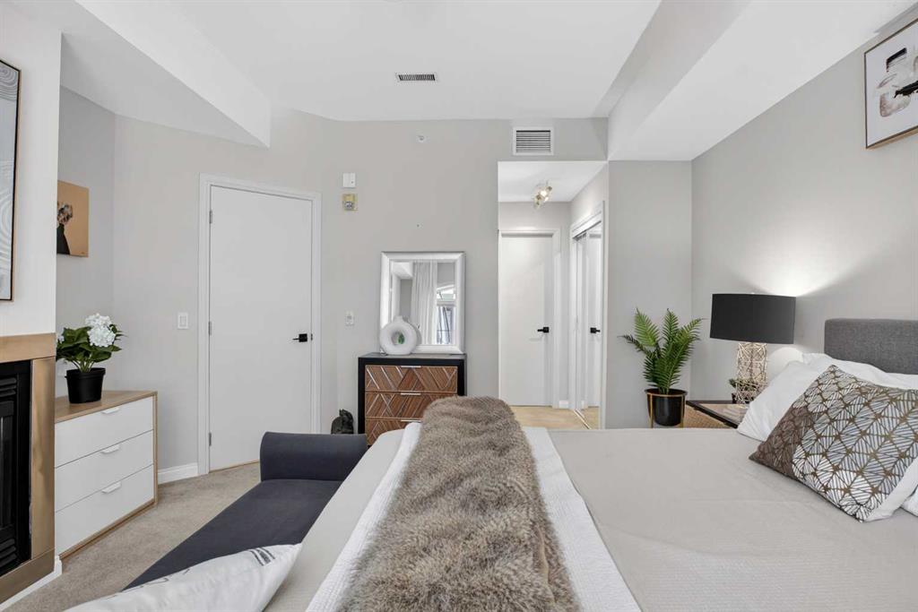 Welcome to urban living at its finest in the heart of Calgary’s vibrant Beltline. This professionally renovated and designed two storey penthouse condo offers the perfect blend of comfort, convenience, and contemporary design. This unit appeals to a variety of buyers, including those interested in short-term rentals, business/commercial use or personal occupancy. As you step inside you will immediately be greeted by a unique living space featuring 20-foot ceilings in the living area, a double sided fireplace, and large windows that fill the space with natural light. The spacious and airy living area flows seamlessly onto a private terrace with views of the Calgary tower perfect for enjoying your morning coffee or utilizing the BBQ gas line on a summer evening while entertaining your guests. The thoughtfully designed kitchen boasts modern two tone cabinetry with underlighting, sleek quartz countertops, a breakfast bar and ample storage—ideal for both everyday living and entertaining. This well-appointed unit includes dual primary bedrooms. One on the main level features generous closet space, a three-piece ensuite bath with a spa like shower and a gas fireplace. A main-level, in-suite laundry adds to the thoughtful design and everyday convenience. Completing the main level is a large, lockable storage area under the stairs, perfect for storing personal items when renting it on Airbnb. Upstairs, a spacious landing area greets you. It can serve as a bright home office leading into an oversized den with a window and closet. This diverse space makes a great 3rd bedroom or a designated space to operate a business, complete with its own private entrance. Last but not least, the primary bedroom on this level has a spacious walk in closet with organizers, a private terrace and a three-piece en suite bathroom. To top it all off this unit comes with a secured heated titled parking stall. Located just steps from Calgary’s best restaurants, cafes, shopping, and nightlife, you’ll love the walkability and energy of this sought-after downtown location while still having the space of a townhome. Whether you’re a first-time buyer, investor, business owner or looking to downsize, this condo offers exceptional value with low condo fees and diverse usage options.