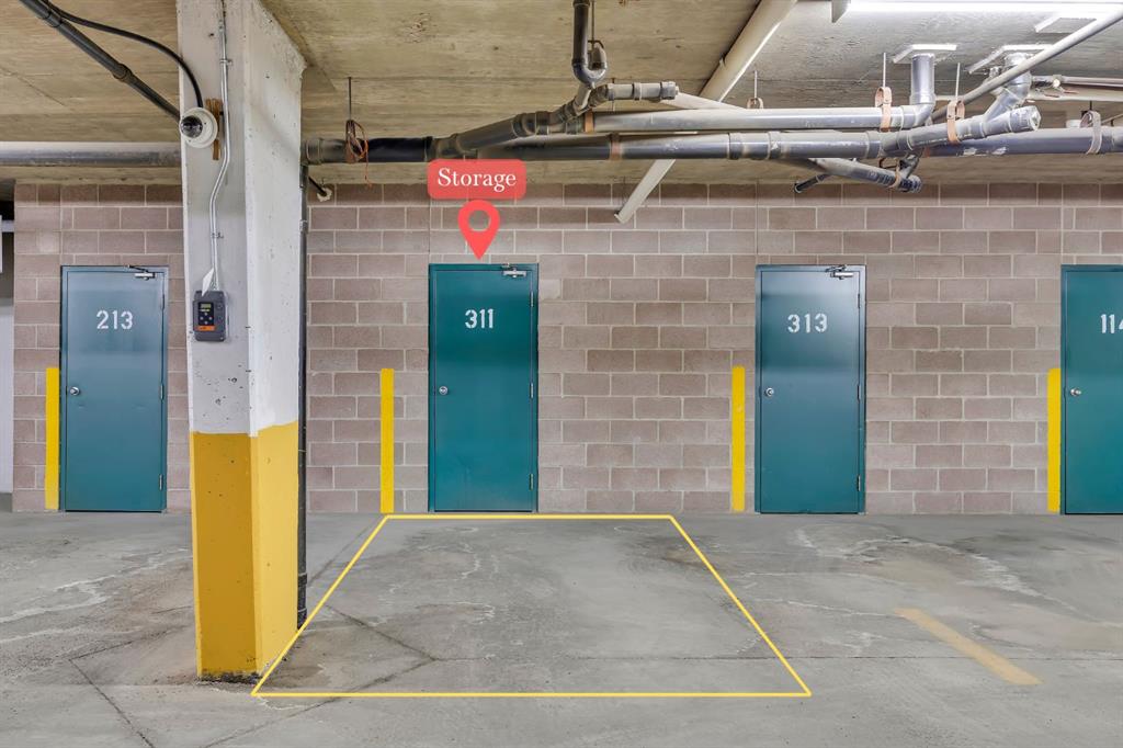 The kitchen connects seamlessly to the main living space, while bedroom one provides excellent flexibility as a bedroom, office, or den. The main bathroom is a 3-piece, and the primary bedroom features a walk-in closet and a 4-piece ensuite. Additional highlights include in-suite laundry, wall-mounted air conditioning, ample in-unit storage, one titled underground parking stall, and a separate storage locker.