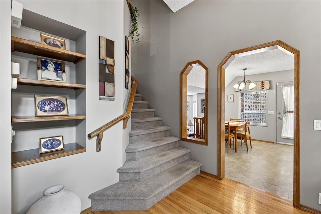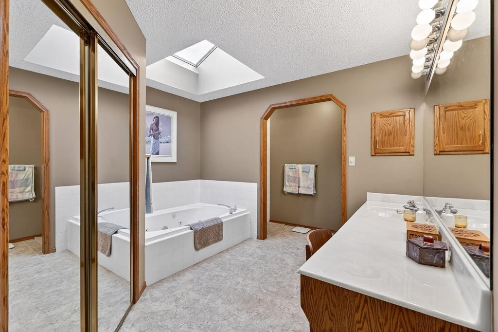 Welcome to Douglasdale! This beautiful 2 Storey Split home has been lovingly cared for and maintained by its original owner. Located in a quiet area of this sought after family community and offers a quiet setting close to Fish Creek Park, Bow River Pathways and Eaglequest Golf Course. Several amenities such as schools, parks, playgrounds and shopping nearby as well as easy access to Deerfoot for a quick commute. Inside, you’ll love this floorplan built by the reputable Jager Homes. It offers character that’s hard to find in today’s housing choices. The open concept and large windows throughout offer an abundance of natural light. Upon entering you’ll notice the spacious feel from vaulted ceilings on the main floor. The traditional kitchen features granite counters, oak cabinets and a corner pantry. The breakfast nook overlooks the huge pie shaped yard. Relax in the glass enclosed sunroom that provides extra living space and views of the mature landscaping and patio. Family room with cozy wood burning fireplace, 2pc bath and full laundry room complete the main floor. Upstairs you’ll find 3 spacious bedrooms including the huge primary suite with 10ft ceilings, full ensuite with soaker tub, separate shower, skylight and walk-in closet. You don’t see a master retreat like this very often! The basement level has a large recreation room with built-in bar. The huge workshop area can easily be developed as a 4th bedroom with bathroom, home gym, office…there’s plenty of space! Next you’ll find an oversized storage area that leads to the utility room. The double attached garage is fully finished and heated as well. Don’t miss out on this opportunity to own in this well established community. Amazing value here! Book your showing today!