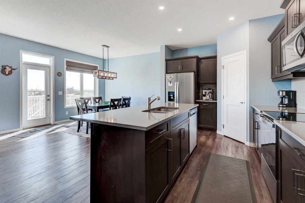 Welcome to this beautifully maintained and thoughtfully designed home offering the perfect blend of comfort, style and functionality. Nestled in a desireable neighbourhood, this property is ideal for families, professionals, or anyone seeking a peaceful, yet convenient lifestyle. Step inside to discover a bright and spacious open-concept layout, featuring large windows that flood the home with natural light. The modern kitchen is equipped with modern stainless steel appliances, quartz countertops, ample cabinetry, separate pantry and a generous island, perfect for prepping, cooking, entertaining and family gatherings. The living and dining areas flow seamlessly, creating a warm and inviting atmosphere. There is also the convenience of private home office on this main floor. Upstairs, you’ll find a spacious bonus room, well appointed bedrooms, including a large primary suite complete with walk in closet and luxurious five peice ensuite. The fully developed basement is thoughtfully finished, adding exceptional living space and versatility, featuring an open layout rec room with bar area, a full bathroom with modern fixtures, and an additional bedroom. Outside, you will enjoy a beautifully landscaped pie shaped yard which offers plenty of room for the addition of play structures, trampolines or firepit. Additional features include a south facing deck with gazebo off the main living area, central air conditioning fenced in dog run and a heated double attached garage. Additionally, the home has just been repainted throughout and brand new upper grade carpet and underlay installed on the stairs and entire upper floor. The location is stellar, offering gorgeous views from the rear deck and close proximity to walking paths, parks and shopping. This is a place you would be proud to call home, don’t miss the opportunity to make it yours!