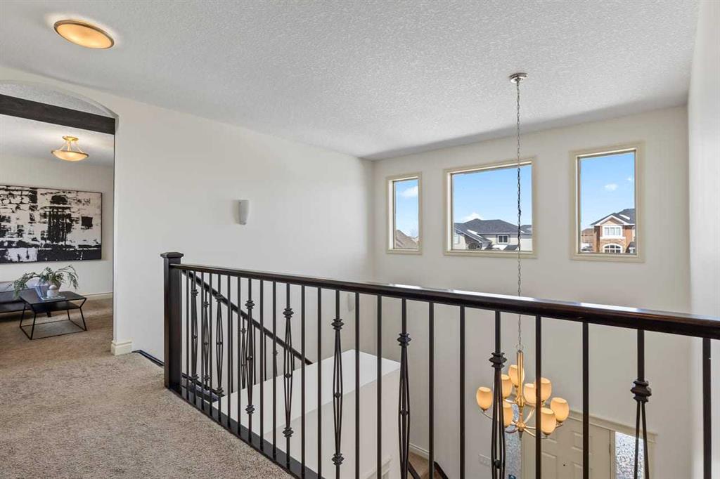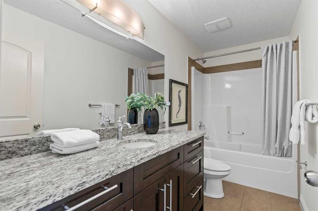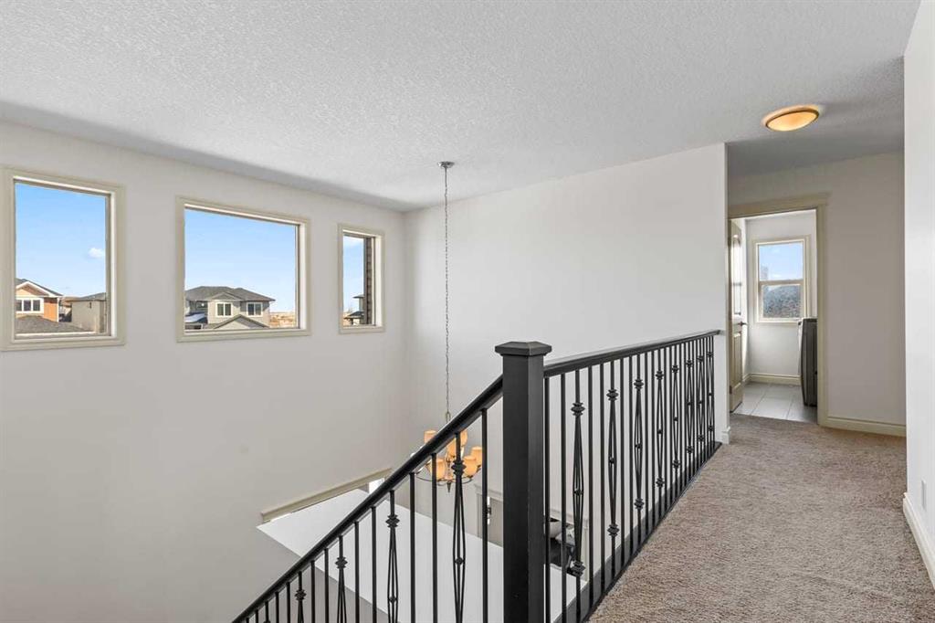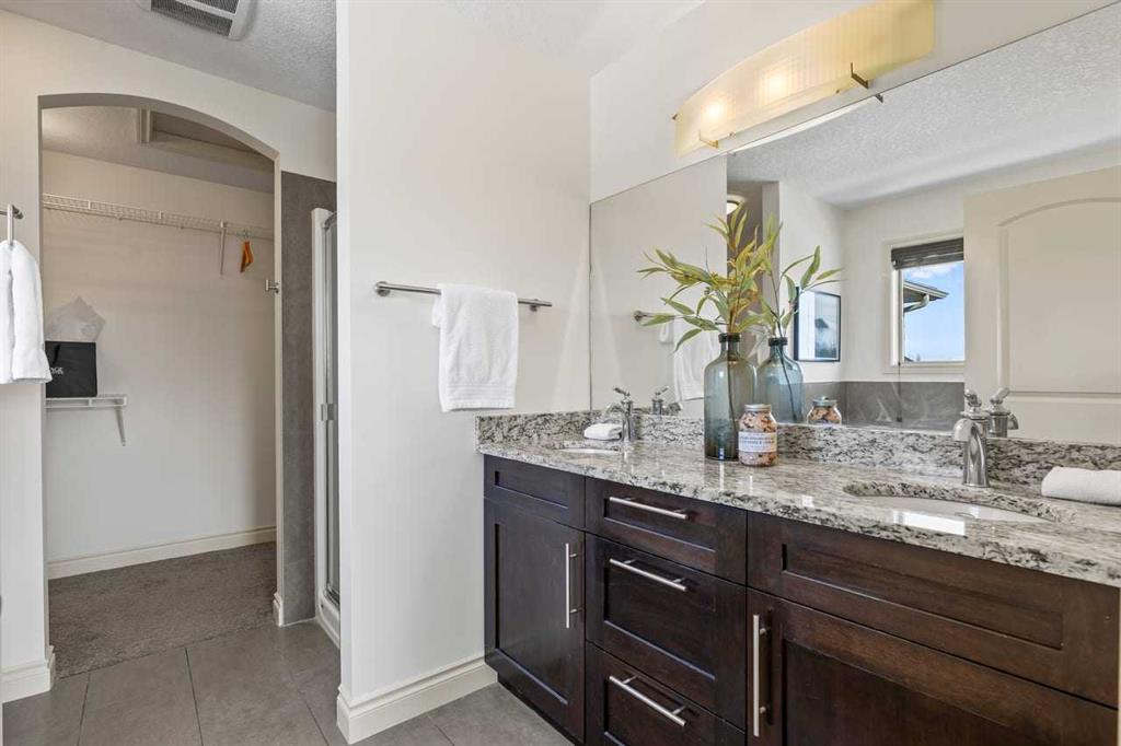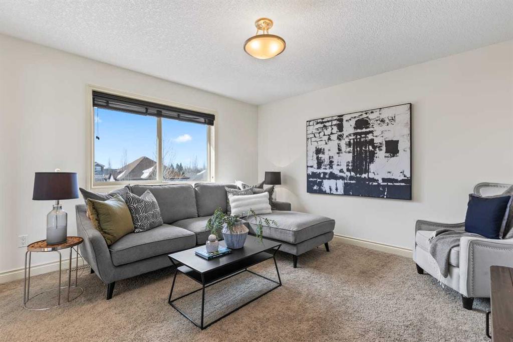Upstairs, a spacious bonus room provides a comfortable second living area, while three well-sized bedrooms offer room for the whole household. The primary suite includes a walk-in closet and a generous ensuite complete with dual vanities, a soaker tub, and a separate shower. A full secondary bathroom and convenient upper-level laundry with sink and cabinetry complete the level.