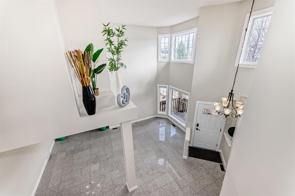 WELCOME TO ROCKY RIDGE! This estate-style home offers approximately 3,000 sq ft of total living space with 4 bedrooms and 3.5 bathrooms. The main floor features beautiful granite flooring and an open-concept kitchen with granite countertops, NEW stainless steel appliances, a large island/breakfast bar, and plenty of storage. A NEW R/O water filtration system has also been installed. The impressive open-to-above ceilings allow for an abundance of natural sunlight, creating a bright and inviting space. The living room also features a cozy gas fireplace with custom built-ins. The upper level offers 3 spacious bedrooms and 2 full bathrooms, including a 4-piece primary ensuite with a walk-in closet. The fully finished basement includes a 4th bedroom, an additional full bathroom with a Jacuzzi, and a large open recreation room—perfect for entertaining or relaxing. The oversized double attached garage includes a new garage door opener and has been painted and drywalled. Sitting on one of the larger lots in the cul-de-sac, the property features a spacious backyard and deck—perfect for outdoor enjoyment. Recent updates include a new furnace and fresh interior paint. Amazing location close to the Shane Homes YMCA, public transit, schools, shopping, and parks. Call today to schedule your private viewing!
