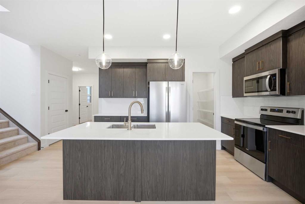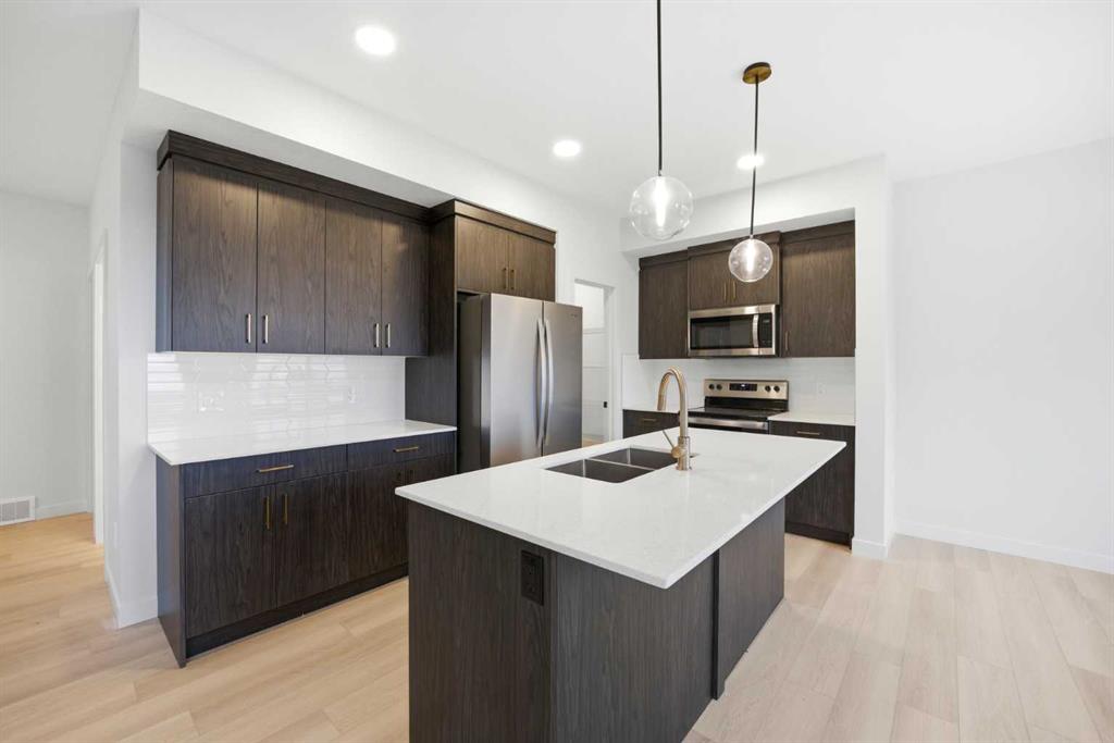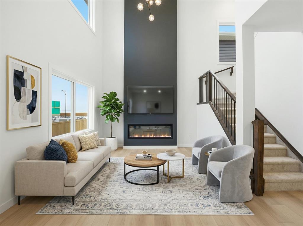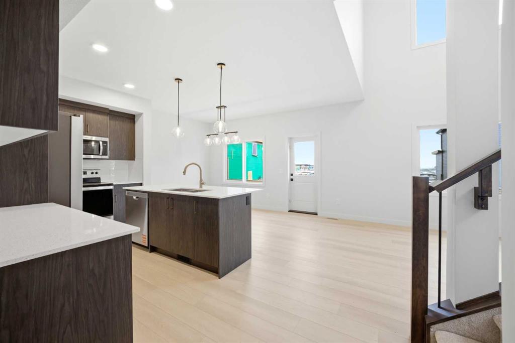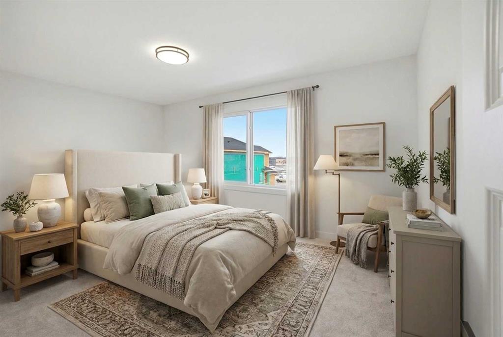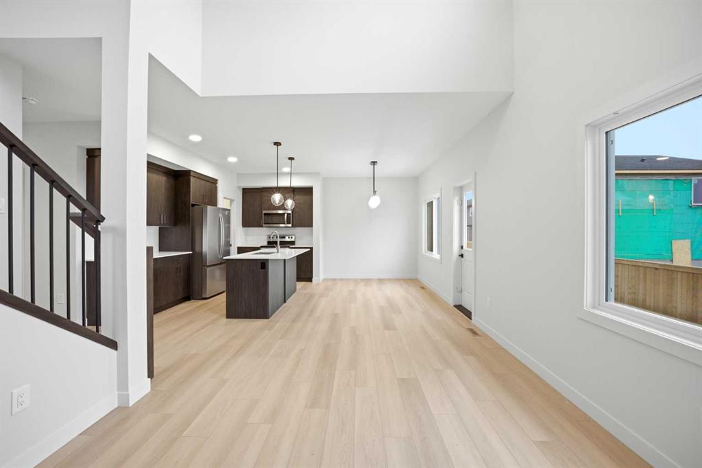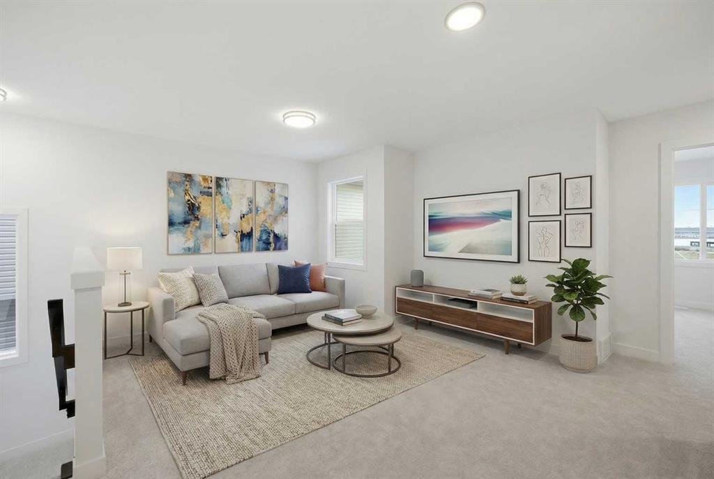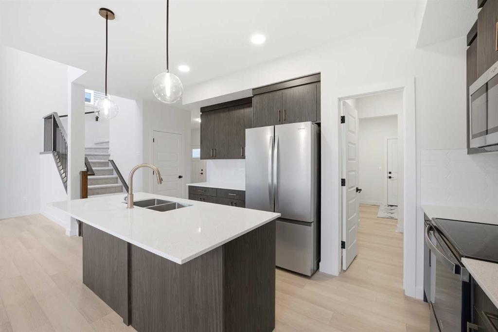 Welcome to your new home in Waterford, Chestermere! Experience modern elegance in this sprawling 2,075 SQ. FT. FRONT-DRIVE SEMI-DETACHED HOME, thoughtfully designed with the modern family in mind. The main floor invites you in with a seamless open layout, highlighted by a STUNNING “OPEN TO ABOVE” LIVING ROOM featuring a custom accent wall and a sleek electric fireplace. Designed for ultimate versatility, the main level includes a RARELY FOUND FULL BEDROOM AND BATHROOM WITH A STANDING SHOWER—perfect for elderly parents, guests, or a quiet home office. The chef-inspired L-SHAPED KITCHEN BOASTS A WALKTHROUGH PANTRY leading to a highly functional mudroom. Upstairs, discover a spacious bonus room bathed in natural light from the open-to-above, a convenient laundry room, and three generous bedrooms. The primary retreat features a double vanity ensuite, much needed walk-in shower, and a spacious walk-in closet. The unfinished basement is prepared for future development, FEATURING A SEPARATE SIDE ENTRY, EXTENDED 9 FT. HEIGHT, TWO REAR EGRESS-SIZED WINDOWS, and a mechanical room tucked away to maximize floor space. Situated on the southwest edge of Chestermere, Waterford offers a peaceful “Lake City” lifestyle with a quick commute to Calgary via easy access to Glenmore Trail and 17th Ave. You are a few minutes away from Rainbow Creek Elementary and Chestermere Lake Middle School, as well as local groceries and popular restaurants. Move-in ready and just minutes from the water—your lakeside retreat awaits! View the 3D tour and book your showing today.