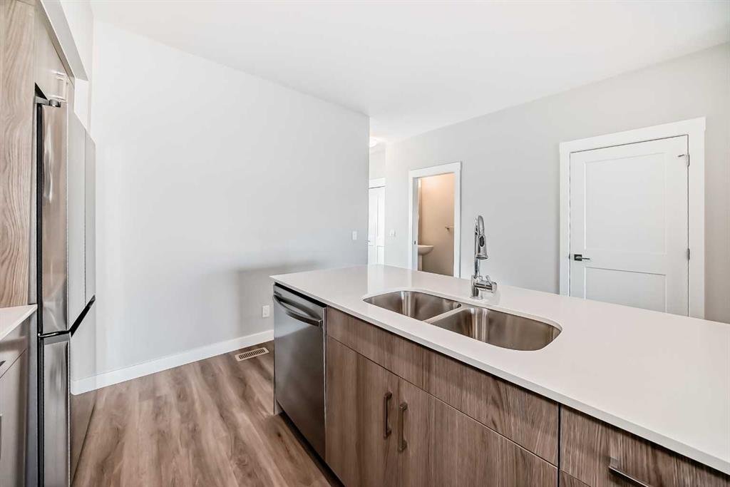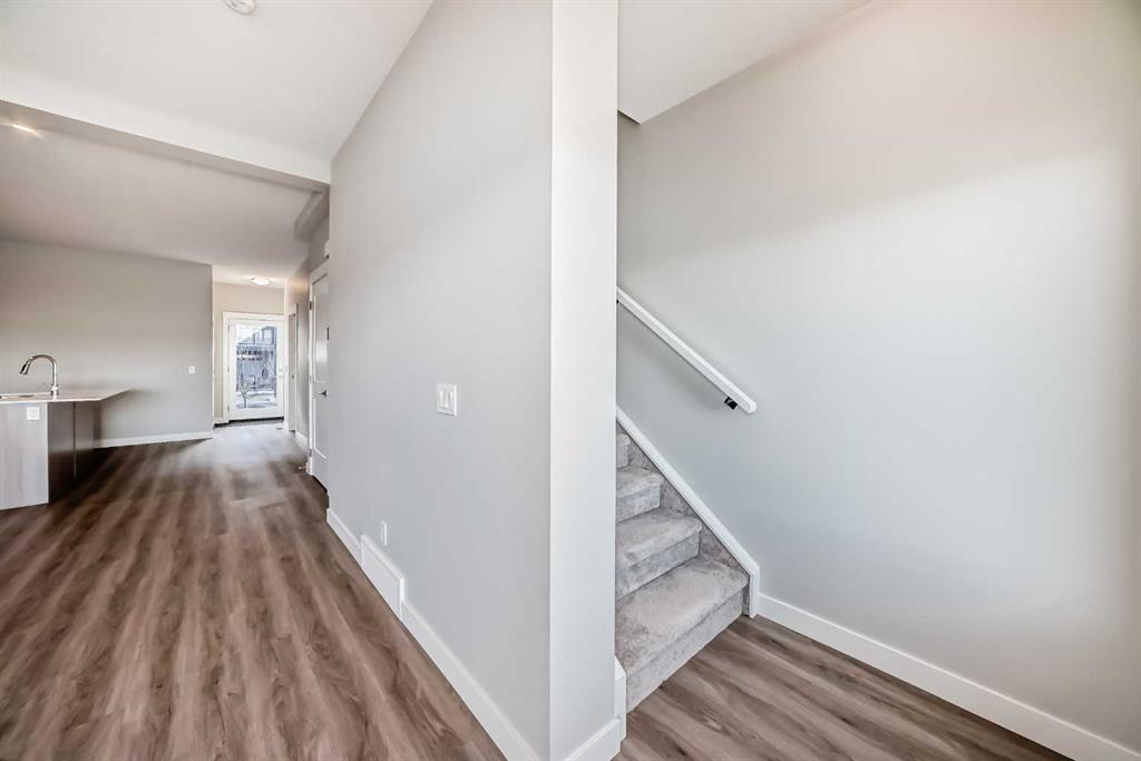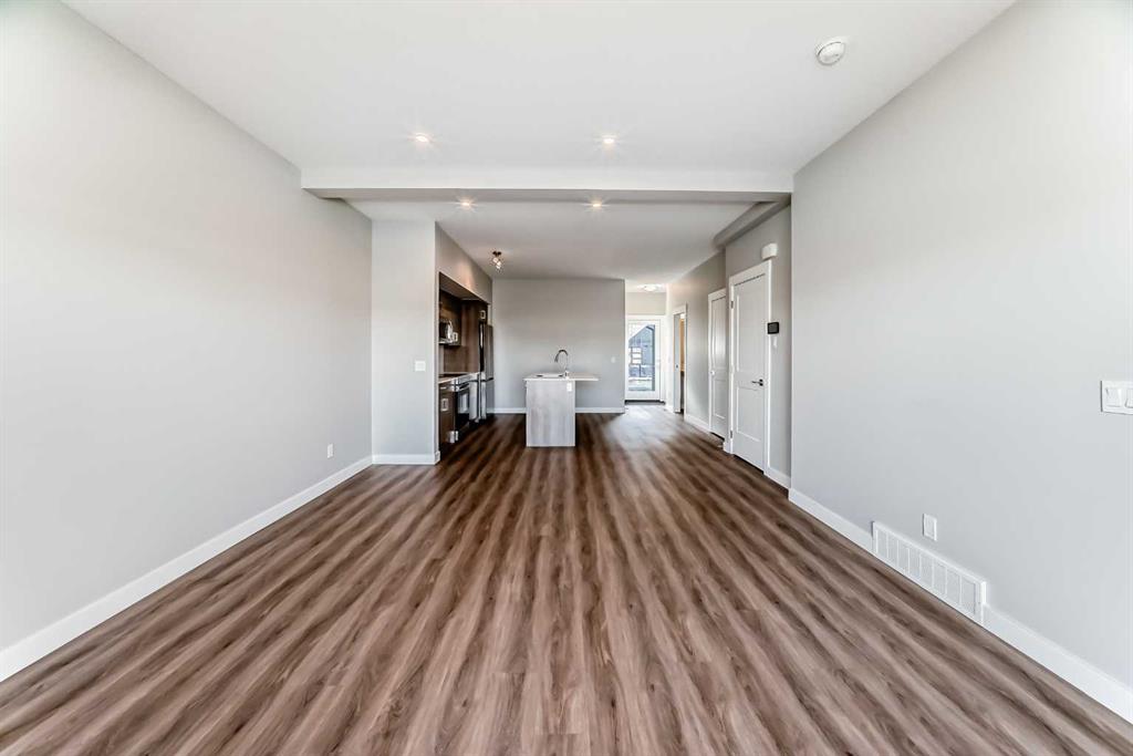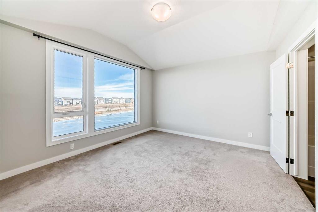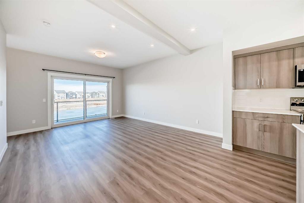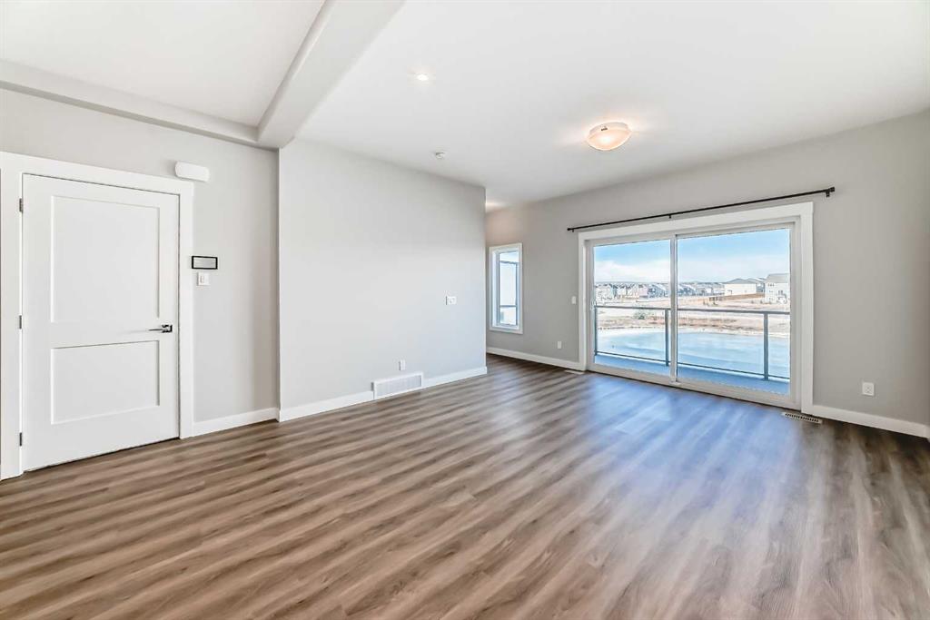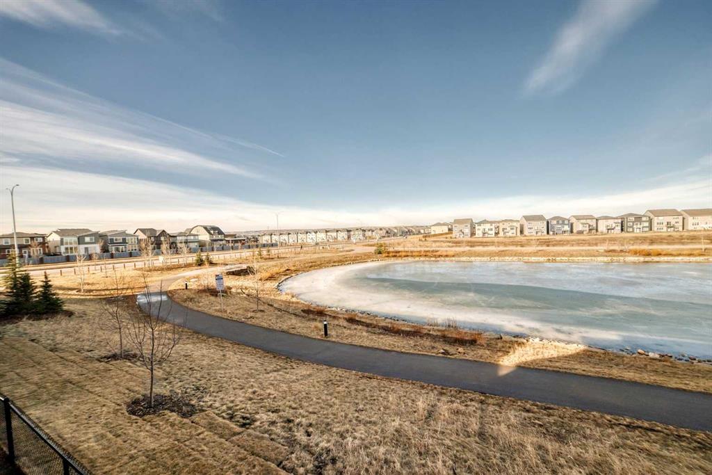 Welcome to this beautifully maintained, almost new 2 storey townhouse in the vibrant community of Livingston NW! Just over a year old, this home offers modern design, quality finishes, and a like new feel throughout. Step inside to a bright and open main floor featuring impressive 9 foot ceilings. The contemporary kitchen is equipped with stainless steel appliances, sleek quartz countertops, and ample cabinet space perfect for both daily living and entertaining. The spacious living room provides direct access to a private deck, ideal for enjoying your morning coffee or summer evenings. A convenient 2 piece bath is also located on the main floor. upstairs, you’ll find three generously sized bedrooms, including a primary suite complete with a walk-in closet and a stylish 4 piece ensuite. An additional full bathroom completes the upper level. The walk-out basement leads to a concrete patio, offering additional out door living space. Backing onto a serene pond and scenic walkway green space, this home boasts beautiful views year round. During the summer months, relax and take in the peaceful setting with a picturesque fountain right behind your home. Combining modern comfort, a prime location, and like new condition, this is an exceptional opportunity you won’t want to miss!