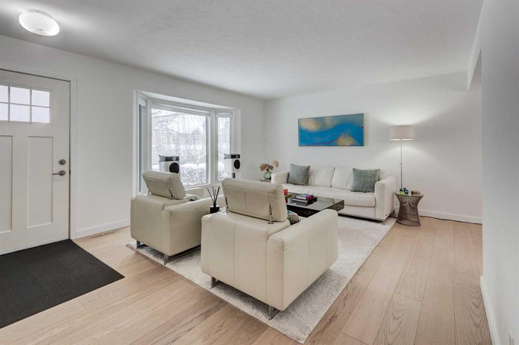 Welcome to a truly exceptional, architecturally enhanced bungalow nestled on a quiet street in the desirable community of Glenbrook, just steps from Glenbrook School. Thoughtfully reimagined with a focus on modern design and performance, this residence seamlessly blends high-end finishes with everyday comfort. Over 1850 sqft on two levels, this home features 4 total bedrooms, 2 full bathroom and an oversized double garage. Striking curb appeal is defined by a fully modernized exterior featuring a complete rainscreen system with Prodema Prodex cladding and locally sourced Rundle stone, while triple-glazed, low-E windows provide exceptional energy efficiency and year-round comfort. A cast-in-place concrete walkway elegantly frames the home, wrapping from front to back. Inside, the home showcases white oak engineered plank flooring throughout and a sophisticated, contemporary aesthetic. The designer kitchen is outfitted with custom white Schenk cabinetry, a built-in refrigerator, induction cooktop, and a premium appliance package from Bosch. Updated lighting—including statement glass fixtures and LED pot lights—adds a distinctive and modern ambiance. Both bathrooms have been beautifully appointed with heated stone tile floors, wall-hung toilets, and sleek, spa-inspired showers. The fully developed lower level is designed for entertaining, featuring in-wall speakers and a stylish beverage centre complete with versatile under-cabinet refrigeration. Mechanical upgrades include a high-efficiency furnace, central air conditioning, tankless hot water system, and an updated electrical system with a 200-amp panel in the garage—offering both peace of mind and long-term efficiency. Outdoor living is equally impressive, with garden doors leading to an oversized west-facing composite deck with glass railings, thoughtfully designed for a future covered structure. The private yard is beautifully landscaped with mature weeping birch trees, seasonal plantings, and cedar fencing with lattice detailing for added privacy and charm. The oversized, heated, and insulated garage is a standout feature, complete with glazing for natural light and security, as well as additional storage space including attic access. This is a rare opportunity to own a meticulously upgraded, design-forward home in one of Calgary’s most established and convenient inner-city communities.
