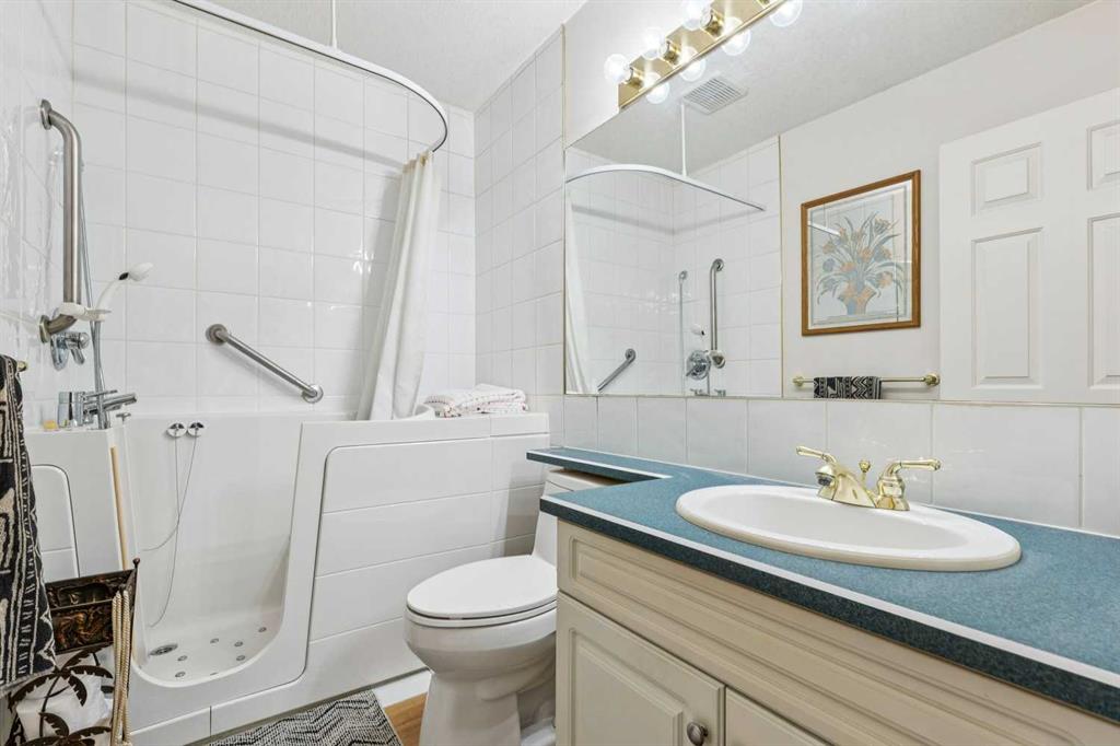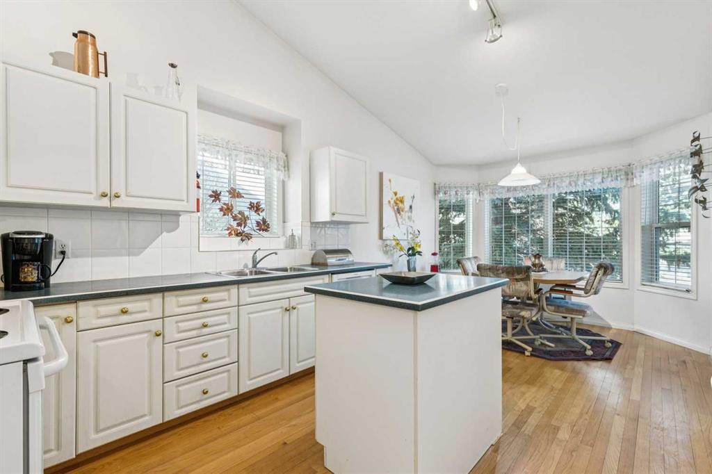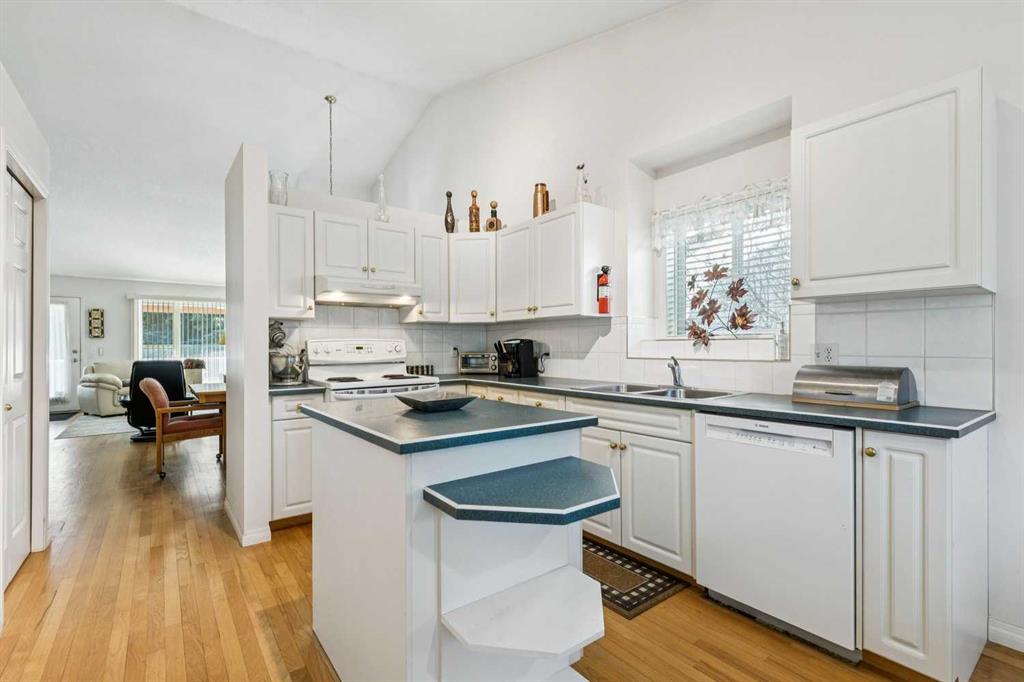 JUST LISTED in PATTERSON! Fully finished 4 bedroom, 3 bathroom, END UNIT BUNGALOW in “Prominence Hills”! QUIET AMAZING LOCATION with NO NEIGHBOURS BEHIND, SUNNY SOUTHWEST facing backyard, right across the street from the OFF-LEASH PARK, and QUICK ACCESS TO OLD BANFF COACH ROAD! Open floor plan with HIGH VAULTED CEILINGS, white kitchen cabinets & island, PANTRY, HARDWOOD FLOORING, GAS FIREPLACE, good sized dining areas, and more! Large primary bedroom with 4 PCE bathroom ensuite, standing shower, corner tub, and walk-in closet. There is also a 2nd main floor bedroom and full bathroom for added convenience. The lower level is fully finished, has a wide open recreation area, large windows, 2 additional bedrooms with huge closet space, a full bath, and laundry. So many extras in this home – DOUBLE ATTACHED GARAGE, bay windows in the kitchen nook, master bedroom, and dining room. Maintenance free SW facing private deck with power awning, knockdown ceiling texture, large mechanical room for storage, underground sprinklers, and more. LOW CONDO FEES include clubhouse with games room and kitchen! Request your showing today as this property is priced to sell at $599,900 and will not last long!