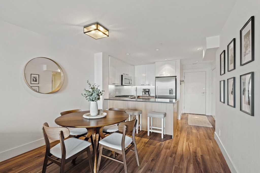 Step inside and you’ll notice the difference is in the details, clean, modern finishes, a bright open layout, and natural light that makes the space feel airy, yet refined. The kitchen is a true focal point, finished with two-tone cabinetry that includes glossy white, flat-front upper cabinets, quartz countertops, a striking backsplash, and a breakfast bar that feels equal parts stylish and functional. High-end appliances complete the space with a sleek, elevated look. The dining area and living room flow together beautifully, creating a comfortable space that still feels polished, with large windows that keep the space light and inviting. The primary bedroom is a calm retreat with a private ensuite bath and generous closet space, while the second bedroom offers flexible luxury—ideal for guests, a home office, or a curated space of your own. A full second bathroom carries the same modern finishes, and in-suite laundry adds the convenience you’ll be glad to have. The large balcony is an easy extension of your living space, morning coffee, fresh air, or evening downtime with a view. This condo pairs elevated interiors with a location that’s hard to beat: minutes to downtown, surrounded by parks, boutique shopping, and some of Calgary’s most loved cafés and restaurants.