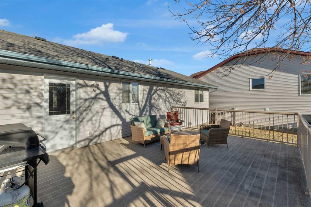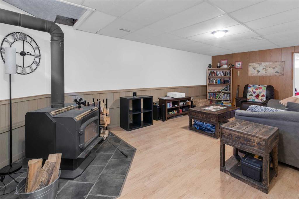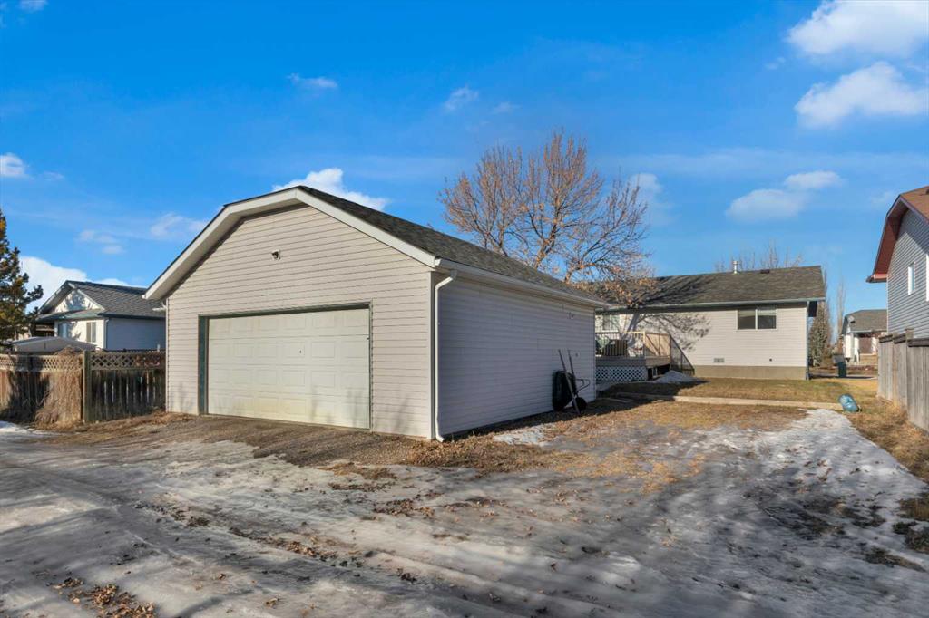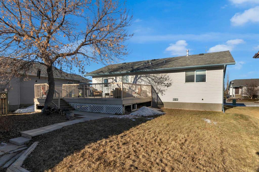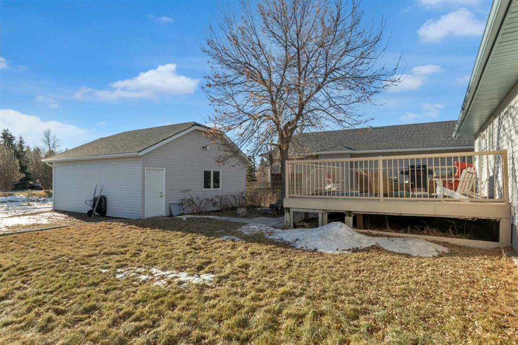 HOME SWEET HOME! This is your EXCITING and AFFORDABLE opportunity to own an updated, move-in ready bungalow in the charming town of Carstairs, just a short drive to Airdrie and Calgary! Escape from the hustle and bustle of the big city in this fantastic home offering 4 bedrooms, 2.5 bathrooms, 2,061 SQFT of well maintained living space throughout and beautiful curb appeal with an inviting front porch. Heading inside you will love the gleaming laminate and cork flooring leading you to the spacious living room flooded in natural sunlight, a large foyer, updated kitchen with newer appliances, quartz countertops, trendy lights and fixtures and ample cabinet space. You will also find 3 terrific sized bedrooms including the magnificent primary bedroom with a sleek 4 piece ensuite bathroom and an additional 4 piece bathroom. Downstairs, you will find a massive recreation room with a cozy wood burning wood stove, a 4th bedroom, a den that is perfect for a home office with a 2 piece ensuite bathroom, large storage room and a laundry/ utility room. Outside, you will find a massive south facing partially fenced yard with a huge maintenance free deck perfect for entertaining, a double detached, oversized garage that is fully insulated, new opener, boarded and heated and lovely landscaping with mature trees that gives you the ultimate in privacy with no neighbors behind. There is even room to park you RV or camper! Amazing, quiet location close to popular local shops, cafes, schools, parks, soccer fields, pond walking paths and a quick drive to the amenities of Airdrie, Balzac and Calgary. Don’t miss out, book a private viewing of this GEM today!