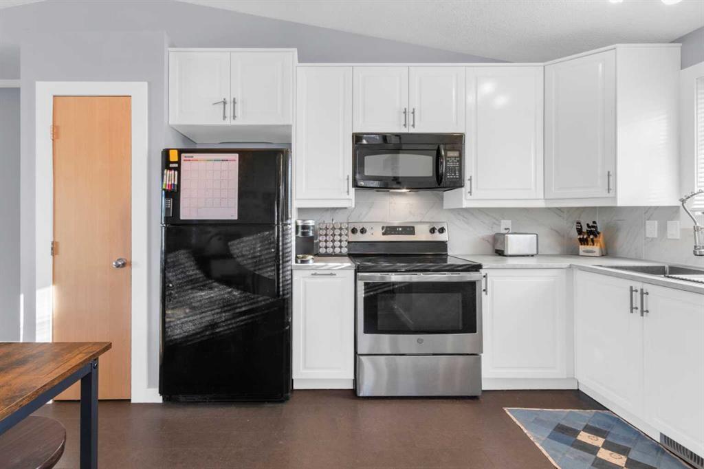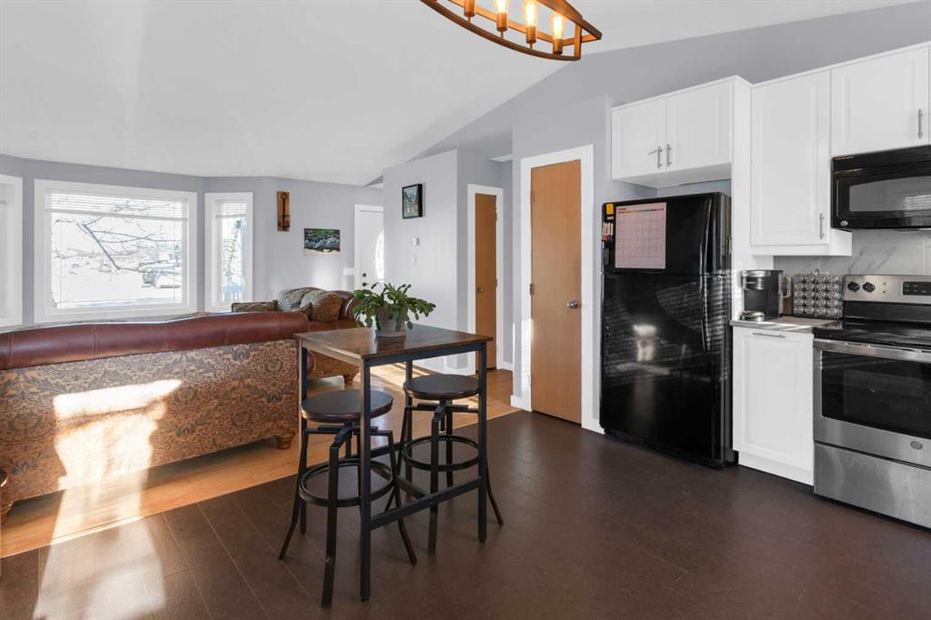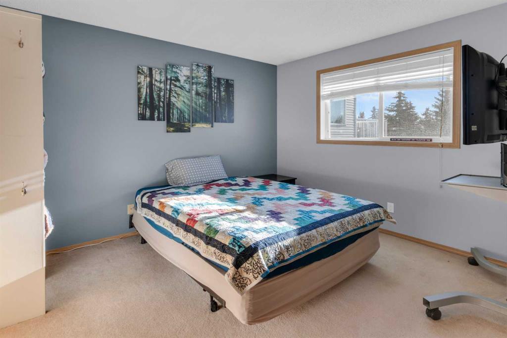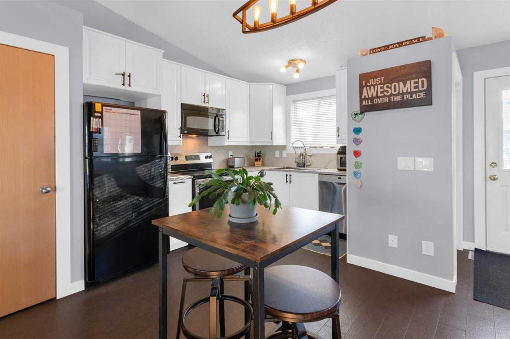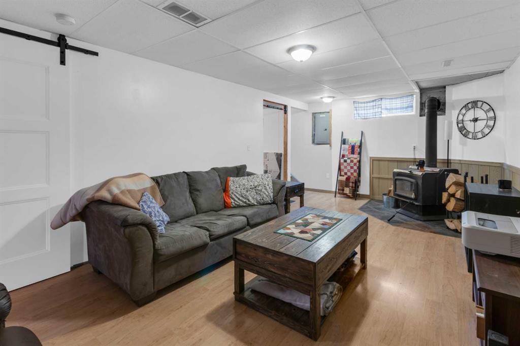 HOME SWEET HOME! This is your EXCITING and AFFORDABLE opportunity to own an updated, move-in ready bungalow in the charming town of Carstairs, just a short drive to Airdrie and Calgary! Escape from the hustle and bustle of the big city in this fantastic home offering 4 bedrooms, 2.5 bathrooms, 2,061 SQFT of well maintained living space throughout and beautiful curb appeal with an inviting front porch. Heading inside you will love the gleaming laminate and cork flooring leading you to the spacious living room flooded in natural sunlight, a large foyer, updated kitchen with newer appliances, quartz countertops, trendy lights and fixtures and ample cabinet space. You will also find 3 terrific sized bedrooms including the magnificent primary bedroom with a sleek 4 piece ensuite bathroom and an additional 4 piece bathroom. Downstairs, you will find a massive recreation room with a cozy wood burning wood stove, a 4th bedroom, a den that is perfect for a home office with a 2 piece ensuite bathroom, large storage room and a laundry/ utility room. Outside, you will find a massive south facing partially fenced yard with a huge maintenance free deck perfect for entertaining, a double detached, oversized garage that is fully insulated, new opener, boarded and heated and lovely landscaping with mature trees that gives you the ultimate in privacy with no neighbors behind. There is even room to park you RV or camper! Amazing, quiet location close to popular local shops, cafes, schools, parks, soccer fields, pond walking paths and a quick drive to the amenities of Airdrie, Balzac and Calgary. Don’t miss out, book a private viewing of this GEM today!