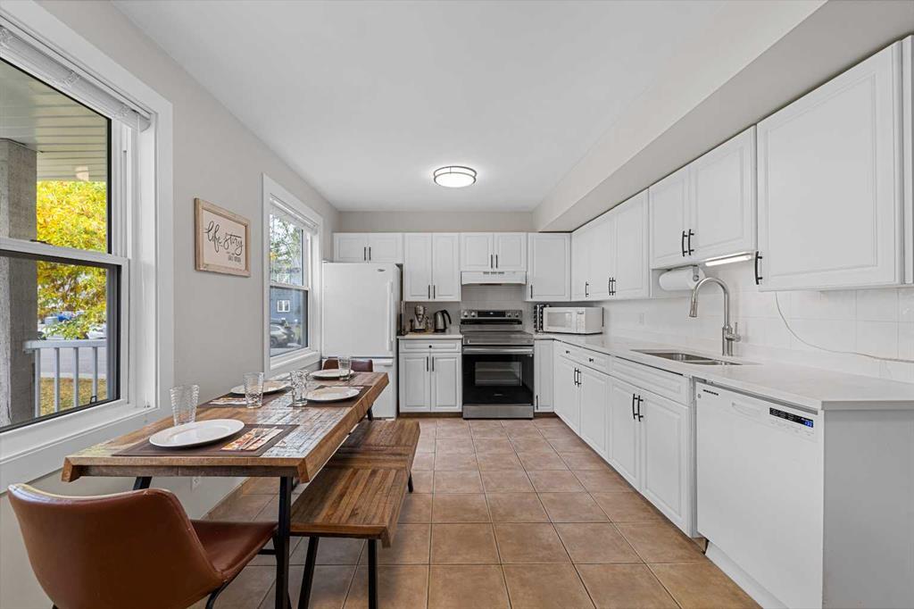 End Unit Townhome | Backing onto Greenspace | 8 Minute Walk to Mount Royal University & CBE Glamorgan School | 3 Bedrooms | 1.5 Bathrooms | 1,098 SqFt | New Quartz Kitchen Countertop | New Stainless Steel Electric Stove | New Double Basin Kitchen Sink | Open Floor Plan Kitchen & Dining | New Living Room Laminate Flooring | Incredible Natural Light Throughout | New Front & Rear Deck 2024 | Assigned Parking Stall | Prime SW Inner City Location. Welcome to this beautifully updated end-unit townhome in the sought-after SW inner-city community of Glamorgan—just an 8-minute walk to Mount Royal University and CBE Glamorgan School. Offering 3 bedrooms, 1.5 bathrooms, and nearly 1,100 SqFt of comfortable living space, this home is perfect for first-time buyers, students, or savvy investors. Step inside to a bright and welcoming foyer that opens into a spacious front living room filled with incredible natural light from the large front window. The new laminate flooring adds a fresh, modern touch to this cozy space. The kitchen and dining area boast an open-concept layout, perfect for entertaining or everyday family living. The kitchen has been stylishly updated with new quartz countertops, a double basin sink, and a brand-new stainless steel electric stove. There’s ample cabinet space for all your kitchen essentials, and the adjacent dining area provides direct access to the new rear composite deck (2024)—ideal for BBQ season and outdoor relaxation. The main floor is completed with a convenient 2-piece bathroom. Upstairs, you’ll find three generously sized bedrooms, including a spacious primary bedroom with a walk-in closet, and a full 4-piece bathroom with a tub/shower combo. The unfinished basement offers excellent potential for future development and currently houses the laundry area and plenty of storage space. Additional features include a new front deck (2024), an assigned parking stall, and access to visitor parking. Your parking stall number 314 is roughly 30 steps outside of your back door making it a quick trip from your car to home! You’ll love backing onto a lush greenspace, providing both privacy and tranquility. Located in a prime SW location, this home offers quick access to major amenities, public transit, parks, schools, and a short commute to downtown Calgary. Don’t miss your chance to own this well-maintained and move-in ready home—book your private showing today!