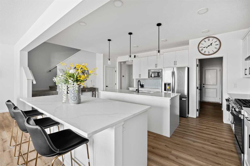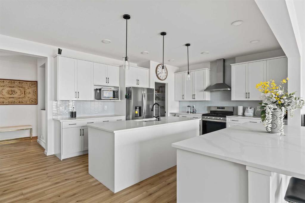 Welcome to 314 Walcrest Way SE – a beautifully designed two-storey home offering over 2,450 sq. ft. of thoughtfully planned living space above grade. With 3 bedrooms and 2.5 bathrooms, this home delivers an exceptional blend of space, comfort, and functionality, perfect for families and those who love to entertain. Step inside to a bright, inviting main floor where the open-concept layout creates a seamless flow between the kitchen, dining, and living areas. The timeless white kitchen is truly the heart of the home, featuring a unique double island design, abundant cabinetry, generous counter space, and a well-appointed walkthrough pantry – ideal for both everyday living and hosting. The spacious dining area easily accommodates larger gatherings and connects effortlessly to the backyard through expansive sliding doors, creating a natural indoor-outdoor living experience. The great room offers a warm and comfortable setting, anchored by a central fireplace. On the upper level, a centrally located bonus room provides additional living space, perfect for relaxing, entertaining, or a family media area. The primary suite is a private retreat, featuring a walk-in closet and a well-appointed 5-piece ensuite with dual vanities, a soaker tub and a walk-in shower. Two additional bedrooms, each with a walk-in closet, a full bathroom, and a conveniently located laundry room with added storage and workspace. The unfinished basement presents a blank canvas, ready for your imagination. Whether you envision additional living space, a home gym, or a future development, the possibilities are wide open and rough-ins are in place. Outside, enjoy a generous backyard with a rear deck, offering the perfect space for summer evenings, entertaining, or simply relaxing outdoors. The fully landscaped and fenced backyard, along with custom window treatments throughout, offers significant savings compared to a new home and provides a move-in-ready, like-new residence. Located in the growing community of Walden, this home is close to parks, pathways, ponds, and nearby amenities, providing a great balance of natural surroundings and everyday convenience. Combining thoughtful design, ample space, and a desirable location, this is a home you won’t want to miss.