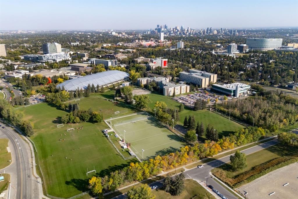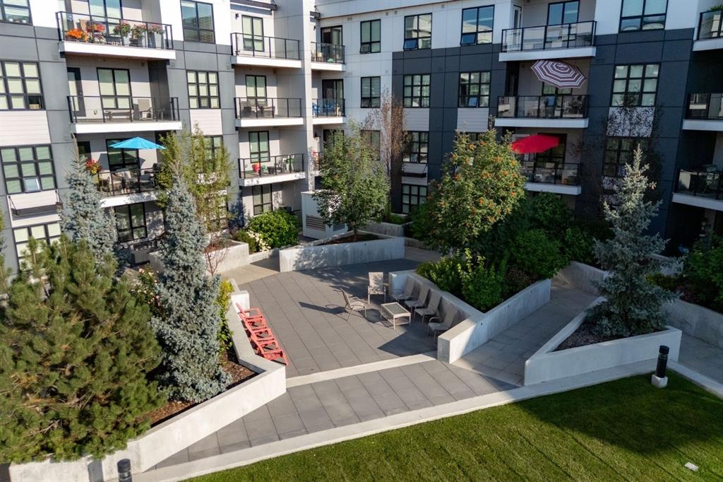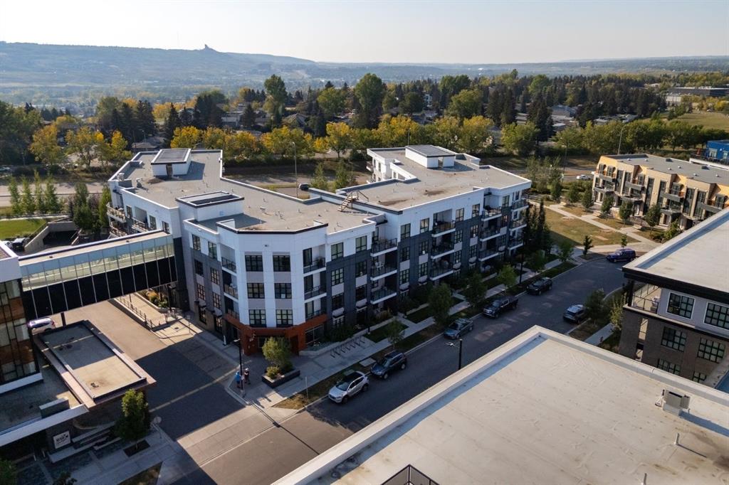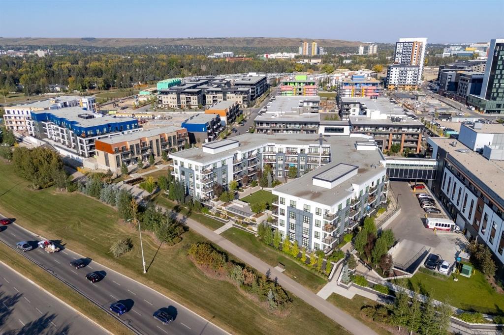 Enjoy maintenance-free living in this beautiful corner unit in the sought-after +55 Maple building, ideally located in Calgary’s vibrant University District. Built by Truman Homes, Maple offers a secure, comfortable, and social community surrounded by every amenity you could need—perfect for those ready to simplify life without sacrificing lifestyle. Life in the University District feels like living in a small town within the city. Everything is steps away—Save-On-Foods, Shoppers Drug Mart, banks, cafés, restaurants, and shops along lively Main Street. Load up your shopping caddy and enjoy running errands without ever needing your car. Designed with pedestrians in mind, the University District features wide sidewalks, curb ramps, benches, and scenic walking routes, making it easy and enjoyable to get around. With new shops and services opening all the time, this area continues to grow as one of Calgary’s most vibrant, walkable communities. The Maple building itself has been thoughtfully designed for “aging in place”, with wide hallways and entrances, barrier-free showers, and common areas that encourage connection. Residents enjoy heated underground parking, storage lockers, bike storage, and beautifully landscaped courtyard with inviting seating areas. Immediately adjacent to Maple is Cambridge Manor – a residence providing independent and supportive living services. Maple owners receive priority placement at Cambridge when additional care or services are needed, providing peace of mind for the future. Cambridge Manor also features a Bistro café, fitness centre, exercise classes, and an entertainment stage, which Maple residents can enjoy at their leisure. Inside Unit 315, you’ll find a bright, spacious, and functional layout that feels instantly like home. Perfect for downsizers, this 810 sqft condo is one of the largest in the building. With its coveted corner location, the unit also features a spacious covered balcony further extending the indoor/outdoor space. Inside the unit you will find two bedrooms, positioned at opposite ends of the condo for privacy, two full bathrooms, 9-foot ceilings, and large windows that fill the space with natural light. The modern kitchen includes quartz countertops, stylish cabinetry, and energy-efficient SS appliances. The extended island with a built-in dining table is perfect for entertaining or cozy meals at home. The primary suite comfortably fits a king-sized bed and includes a walk-through closet and spa-inspired five-piece ensuite with double sinks and a spacious, barrier-free shower. The second bedroom makes an excellent guest room, hobby space, or home office—offering versatility to suit your lifestyle. A fantastic layout and ample space for all you need to live simply and elegantly with minimal cleaning and upkeep in one of Calgary’s best communities. Whether you’re seeking a secure home base while you travel or a vibrant, connected community to enjoy year-round, Unit 315 at Maple offers the best of both worlds.