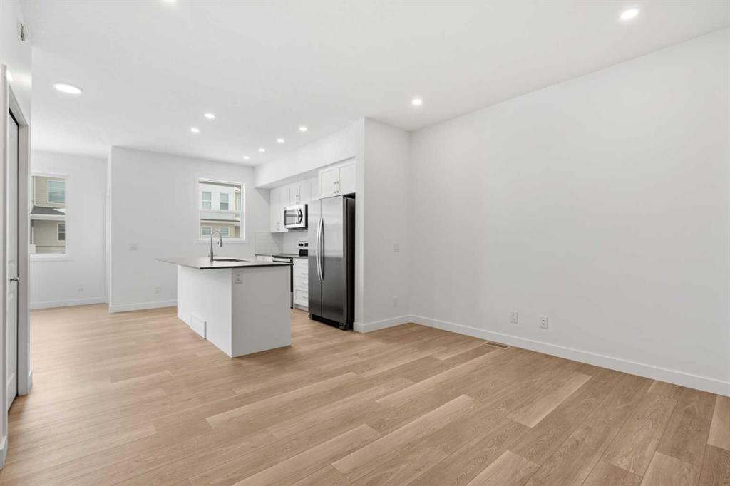 NEW BUILD 3-STOREY TOWNHOME | LOW CONDO FEES | 3 BED / 2.5 BATH / 1,320 SQ FT | SINGLE ATTACHED GARAGE + DRIVEWAY | Welcome to the Bellhaven by Minto Communities, an award-winning Canadian builder with over 70 years of experience! Located in Belvedere Rise, this thoughtfully designed three-storey townhome offers a functional layout, modern finishes, and exceptional value in one of southeast Calgary’s most convenient communities. The main living level features a beautifully appointed kitchen complete with a central island, stainless steel appliances, ample cabinetry, and a pantry for added storage. The kitchen seamlessly connects to the living room at the back of the home, creating a comfortable space for relaxing or entertaining, while a tucked-away 2-piece bathroom adds everyday convenience. At the front of the home, you’ll find a bright dining area with direct access to your private balcony. Upstairs, the spacious primary bedroom includes a walk-in closet and a 4-piece ensuite. This level also features a second well-sized bedroom, an additional 4-piece bathroom, and upper-floor laundry for added practicality. The ground floor welcomes you with an open foyer and a large utility room, ideal for additional storage. You’ll also find direct access to the single attached garage and driveway, keeping daily routines simple and efficient. Belvedere Rise fosters a true sense of community with its pedestrian pathways, nearby greenspace, and intimate scale, creating an environment where neighbours can easily connect. Located just steps from East Hills Shopping Centre, residents enjoy unmatched walkability to Costco, Walmart, banks, restaurants, and everyday essentials all just across the street. With quick access to major roadways and public transit, commuting downtown or around the city is effortless. Combining modern finishes, a functional three-storey layout, low condo fees, and an unbeatable location, this is a fantastic opportunity to secure a brand-new townhome in one of southeast Calgary’s most convenient communities. Contact Minto’s sales staff and book your visit today!