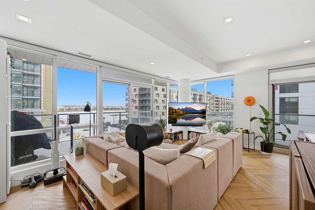 Thoughtfully designed, this bright and spacious 2-bedroom plus den, 2-bathroom suite features a modern open-concept layout enhanced by 9-foot ceilings and expansive floor-to-ceiling windows that flood the space with natural light. Elegant herringbone-pattern luxury vinyl flooring and upgraded finishes throughout add a sophisticated touch.