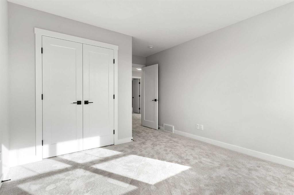Additional upgrades include 9-foot ceilings and 8-foot doors on the main floor, black spindle railings, black hardware and designer lighting throughout, oversized triple-pane windows, built-in MDF shelving, finished stairs to the basement, a closed-off mechanical room, gas line for BBQ hookup, and rough-in for solar panels.
