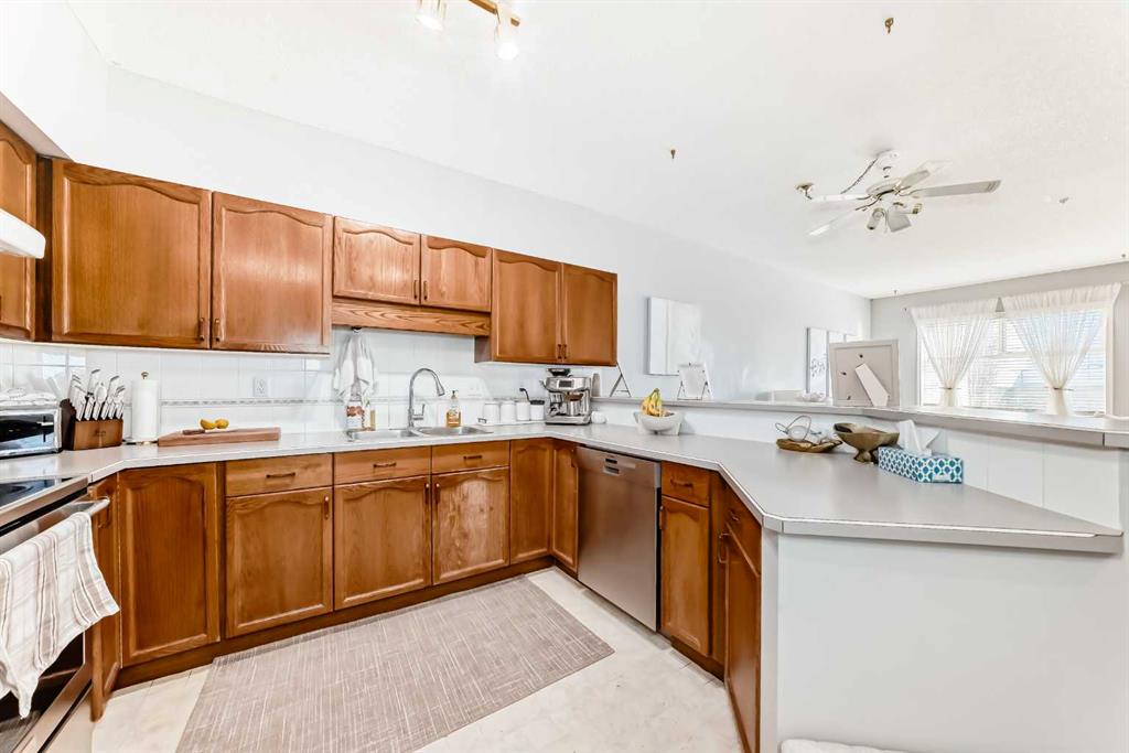 Welcome to College Gardens in the desirable community of Lincoln Park, ideally located next to Mount Royal University with quick access to transit, major routes, shopping, and everyday amenities. This bright and well-maintained third-floor condo offers a functional open layout with 2 bedrooms and 2 full bathrooms. The primary bedroom features a walk-through closet and private 4-piece ensuite. The spacious kitchen includes a breakfast bar overlooking the living and dining areas, perfect for entertaining. Enjoy the private balcony accessed from the living room. Additional features include in-suite laundry, storage room, and an underground parking stall. Well-managed complex with an attractive lobby and excellent maintenance. Conveniently located with easy access to downtown and surrounding amenities. A great opportunity for first-time buyers, students, or investors — shows very well!