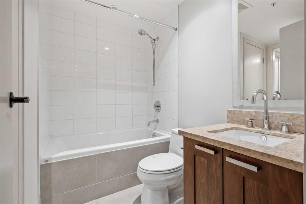 Welcome to Waterfront, one of Calgary’s most desirable downtown communities, ideally located along the Bow River and pathway system in the heart of Eau Claire. This well-maintained 1 bedroom + open den condo offers 670 sq. ft. of thoughtfully designed living space and is conveniently located on the 3rd floor. The bright and functional layout features 9-foot ceilings, a spacious open-concept living area, and a versatile den perfect for a home office. The gourmet kitchen is equipped with quartz countertops, full-height hardwood cabinetry, an undermount sink, and a gas cooktop with built-in oven, along with a dishwasher, microwave, and refrigerator. Recent updates include fresh paint and new light fixtures, giving the home a clean, modern feel. Enjoy central heating and air conditioning, in-suite laundry, and a private east-facing balcony—perfect for morning sun. The unit also includes one assigned underground parking stall and a private storage locker conveniently located just across the hall. Residents of Waterfront enjoy an exceptional range of amenities including a 7th-floor outdoor courtyard, fitness centre and yoga studio, hot tub, theatre room, guest suite, party room with pool table, bicycle storage, car wash, concierge service, secure guest parking, and 24-hour security. The building is pet friendly with board approval. Step outside and enjoy immediate access to the Bow River pathways, Prince’s Island Park, Eau Claire amenities, restaurants, shopping, and downtown, all within an easy walk. This quiet, secure building with outstanding walkability is the best of urban living.