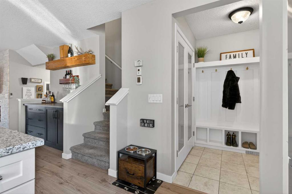 From the moment you arrive, it’s clear this is not your average townhome. The main floor features a bright, open-concept layout that seamlessly connects the family room, dining area & kitchen, highlighted by a modern feature wall with fireplace. The kitchen boasts quartz counters, new stainless appliances, a large pantry & a built-in wine/coffee bar buffet, making it ideal for both everyday living & entertaining. The warmth & flow of this space make it instantly feel like home.