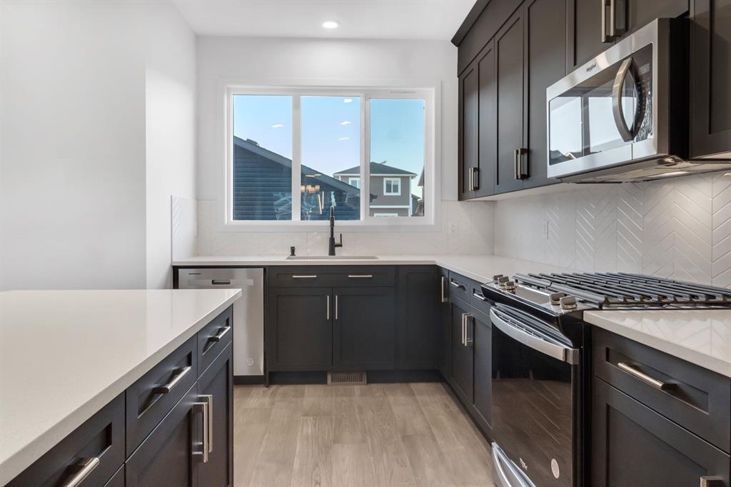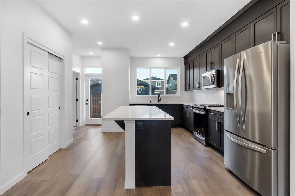 Brand New! Welcome to this stunning brand-new home in the desirable community of Midtown, Airdrie! Thoughtfully designed and extensively upgraded, this home offers modern elegance and functional living. Step inside to an open-concept main floor featuring 9-ft ceilings and beautiful engineered hardwood floors. The gourmet kitchen boasts sleek 3 cm QUARTZ countertops, high-end stainless steel appliances including a GAS stove, an upgraded lighting package and a half bathroom completes the main level. Upstairs, the primary suite is a true retreat, offering an en-suite and a walk-in closet. Two additional spacious bedrooms, a bonus room, a 3-piece bathroom, and a convenient upstairs laundry add to the home’s practicality. The separate entrance to the unfinished basement provides endless potential for customization, whether you envision a home gym, extra living space, or a home based business. The property also includes a double-car garage, ensuring ample parking and storage. Located in Midtown, you’ll enjoy the perfect blend of tranquility and convenience, with parks, shopping, and amenities just minutes away. This never-lived-in home is move-in ready—don’t miss the opportunity to make it yours! Book your showing today!