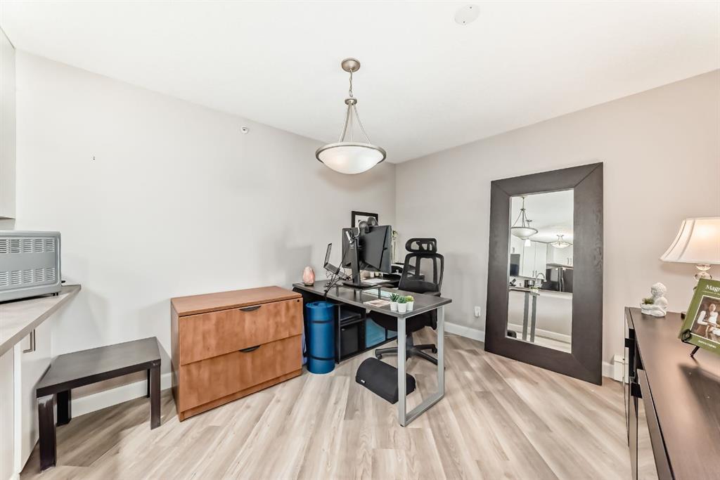 Additional features include a titled parking stall, titled storage unit, bike room, and on-site gym. Pets are welcome with approval. The complex backs onto extensive walking paths near Mount Royal University, and the surrounding area continues to grow with new breweries and restaurants, providing plenty of dining and lifestyle options. Call your favorite realtor today and book a showing.