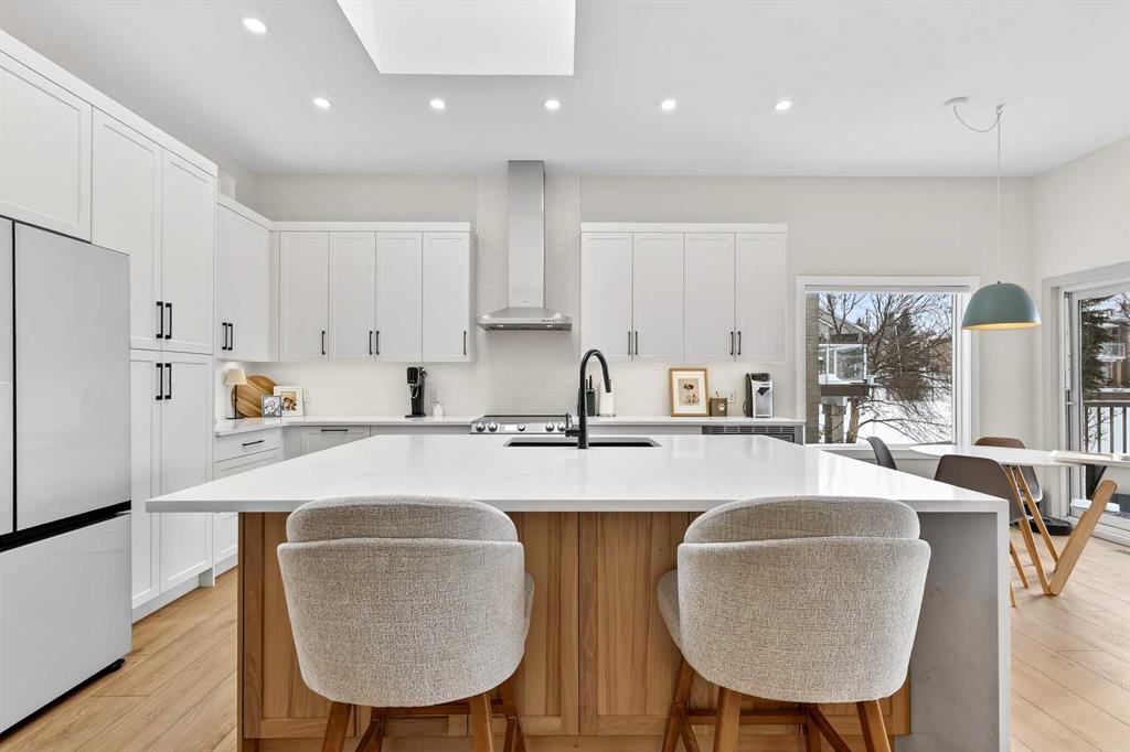 Welcome to an exquisitely renovated walk-out bungalow in the beautiful & highly sought-after community of McKenzie Lake-where established charm, wide tree-lined streets & true sense of community create an exceptional place to call home. Offering over 2,800 sq.ft. of beautifully developed living space, this long-time family-owned residence has been completely transformed & is now ready to welcome its next chapter. Every corner has been thoughtfully refreshed, blending timeless design with modern sophistication. From the moment you step inside, you’re greeted with wide plank luxury vinyl flooring, striking new front door with sleek black hardware, crisp fresh paint, transom window detail & refined flat-finish ceilings with inset lighting, creating a feeling straight from the pages of a lifestyle magazine. A stunning formal dining room framed by an oversized window, designer chandelier & elegant arched doorway sets the tone for memorable gatherings. The private main-floor den, currently styled as a nursery, offers flexibility as a serene home office or retreat. The open-concept living space seamlessly showcases the heart of the home-a beautifully reimagined kitchen featuring a dramatic white quartz waterfall island with soft grey veining, 2-toned cabinetry, stylish hardware, undermount sink, built-in microwave, sleek appliances, chimney hood fan backed by penny tile & skylight that floods the space with natural light. The adjacent living room is anchored by a bold black shiplap feature wall with built-in speakers & a large picture window framing the greenery beyond. A charming breakfast nook sits beside French sliding doors leading to the upper deck-the perfect vantage point to enjoy the expansive yard & peaceful greenspace. The spacious primary highlights the impressive 10-foot ceilings of the main floor & is complemented by a spa-inspired ensuite featuring a freestanding soaker tub, dual vanities with quartz counters, designer lighting & mirrors; a striking tiled shower with built-in shelving & modern fixtures. A stylish powder room & thoughtfully designed laundry room with cabinetry, folding counter & hanging space complete the main level. The fully finished walk-out expands your living & entertaining space with a sophisticated wet bar adorned with shiplap detailing, cabinetry & bar fridge-all overlooking a cozy family room with stone-surround fireplace & mantle. A spacious recreation area offers room for a pool table & gatherings, while 2 additional bedrooms-both with walk-in closets & beautifully renovated bathroom provide comfort for family or guests. The generous utility room doubles as a home gym. Step outside to your private backyard oasis backing onto an expansive greenspace. With no immediate rear neighbours & walking paths in the distance, you’ll enjoy both privacy and connection to nature-the perfect balance. This is more than a home-it’s a lifestyle. A place where neighbours know each other, pride of ownership is evident & every drive home feels right