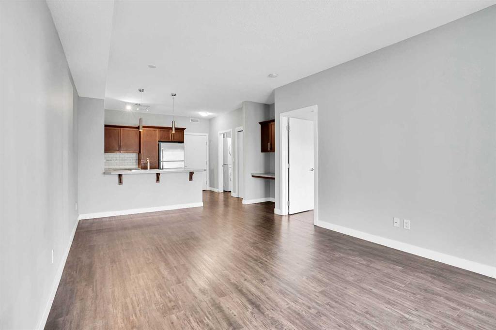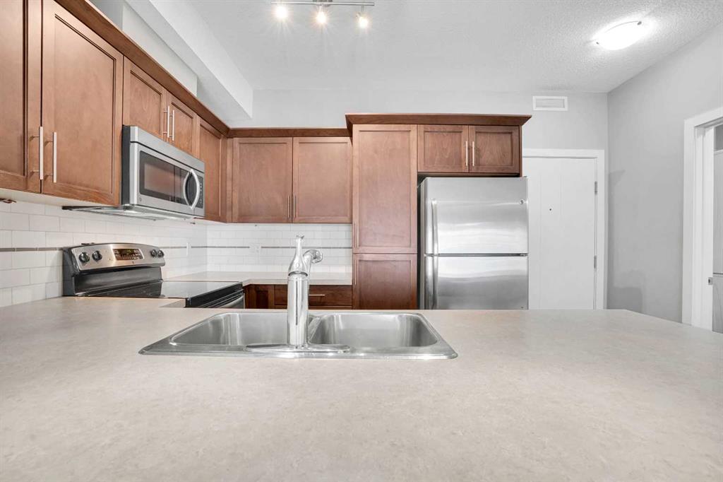 Welcome to Red Haus, a well-cared-for and pet-friendly community in the heart of Royal Oak, where up to two pets are permitted with no weight restrictions. This inviting 1-bedroom, 1-bathroom condo offers 607 sq ft of efficiently designed living space with an open layout, high ceilings, and great natural light throughout. The modern kitchen includes stainless steel appliances, ample cabinet space, and a comfortable breakfast bar, while a dedicated office desk area provides a convenient spot for work or study. Step out onto your private balcony to enjoy the sunshine or grill using the natural gas hookup. Additional features include in-suite laundry, a HEATED underground TITLED parking stall, and a secure TITLED storage unit. Residents also have access to an impressive clubhouse with a lounge area, pool table, full kitchen, upper-level seating, and a well-equipped gym with a walkout patio. Ideal for first-time buyers, downsizers, or investors, this home offers exceptional value in one of NW Calgary’s most desirable communities.