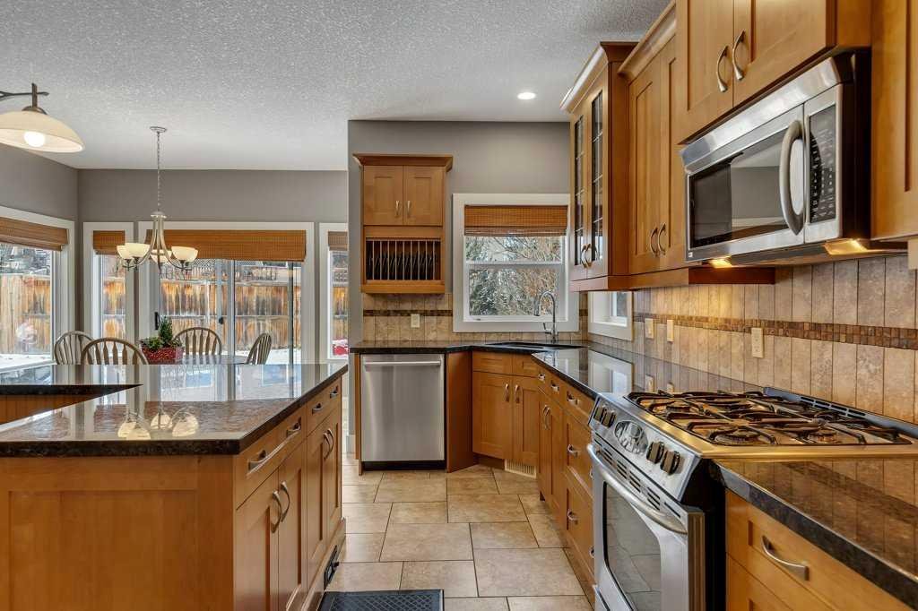 Located in a quiet cul-de-sac with beautiful curb appeal, welcome to 319 Valley Crest Court NW—a 2,490 sq ft two-storey home offering 3 bedrooms, a spacious bonus room, main-floor office/flex room, and a highly functional mudroom with walk-through pantry access. A large foyer open to the second-floor gives the entry a bright and airy feeling. You will notice a calm, cohesive color palette that carries throughout the home. Porcelain tile flooring, generous windows, and rich wood cabinetry create a warm, inviting atmosphere. The main living area features an open-concept design that seamlessly connects the kitchen, breakfast nook, and family room. This space is bright and airy thanks to high ceilings, abundant natural light, and a west-facing backyard. The kitchen feels both classic and comfortable, with natural-finish cabinetry with under cabinet lighting, granite countertops, recessed lighting, and a stylish pendant fixture over the island. A built-in desk area adds versatility for quick meals or a convenient workspace. Neutral tile flooring and porcelain backsplash tie the space together, while a window above the sink brings in soft daylight. The breakfast nook is surrounded by windows on three sides, offering lovely views of the landscaped backyard. A three-sided gas fireplace provides a cozy division between the nook and the living room. The walk-through pantry connects directly to the mudroom and garage, offering abundant shelving and storage. The mudroom/laundry room includes cabinetry and a deeper than normal sink for added convenience. The generously sized main floor office could also be used as a dining room depending on your needs and lifestyle. The 2-piece bath with marble counter-tops complete this level. Upstairs, the primary suite is accompanied by two additional generous bedrooms and a 5-piece main bath. The primary bedroom features a 5-piece ensuite with dual sinks, marble counter tops & a large walk-in closet with built-in shelving & drawers. A bright, comfortable bonus room provides the perfect spot for family time. The lower level is unfinished and ready for your personal vision. In floor heating and a bathroom are both roughed-in. Outside, the pie-shaped west-facing backyard is fully landscaped with a paving stone patio offers plenty of room to enjoy the outdoors. This home includes 2 furnaces with separate controls. Both the stove & washer are equipped to operate either as gas or electric, giving you the flexibility to use it in whichever mode you prefer The oversized double-attached garage provides generous space, easily accommodating a full-sized truck, & includes a built-in vacuum system outlet with attachments to help keep your vehicles spotless. Valley Ridge is a sought-after community surrounded by parks, pathways, & a semi-private golf course. The location offers the ideal blend of nature and convenience: 20 min to downtown Calgary, minutes from WinSport, Calgary Farmers’ Market, & quick routes to downtown, Canmore, & the Rockies.