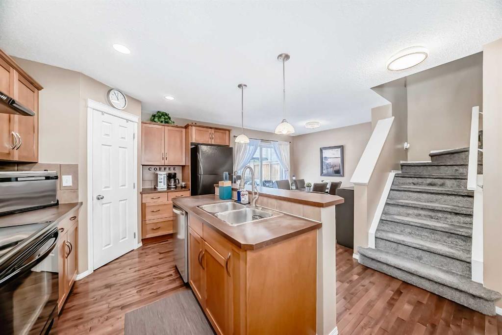 Pride of ownership is evident throughout this fully renovated end unit townhome in the desirable community of Country Hills Village. Offering 4 bedrooms and 3.5 bathrooms, this home features a bright and functional open concept main floor with high ceilings, new flooring, and large windows that provide an abundance of natural light. The spacious kitchen is equipped with premium appliances, ample cabinetry and counter space, a corner pantry, and a large breakfast bar that overlooks the living room and separate dining area with access to the expansive rear deck, ideal for entertaining. A generous front entry and convenient 2pc bathroom complete the main level. Upstairs, the oversized primary bedroom includes a walk-in closet and a 4pc ensuite. Two additional bedrooms, a full 4pc bathroom, and new carpet complete the upper level. The fully developed basement (completed with permits) offers a spacious family room, a fourth bedroom with a 3pc ensuite, as well as a laundry area and extra storage. Additional features include a large front porch and two titled parking stalls located directly in front of the unit. Conveniently situated close to schools, parks, public transit, shopping, restaurants, and with easy access to major roadways.