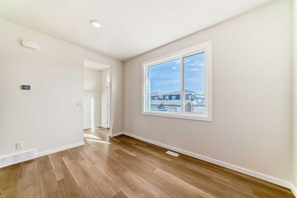 Upstairs, the primary bedroom stands out thanks to its windowed walk-in closet—a natural-light perk you rarely see at this price point. The ensuite brings a clean, modern feel with its tile-and-glass shower, creating a quiet little retreat at the end of the day. Two additional bedrooms offer flexibility for kids, guests, or home office needs, and laundry is right where you want it—steps from the closets, not a flight of stairs away.