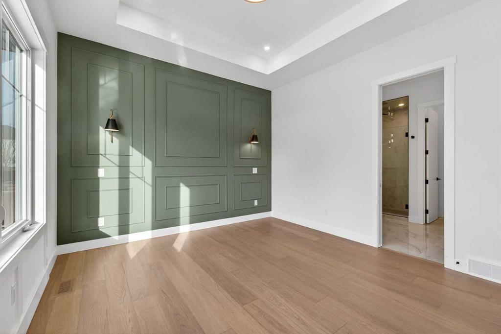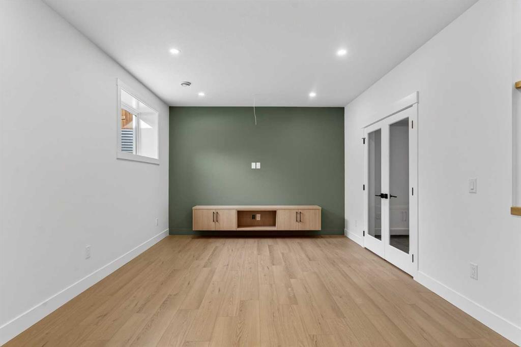 NEW BUILD!! CORNER LOT!! HUGE LOT(7857 SQFT)!! HIGH-PITCH BUNGALOW!! DOUBLE TANDEM ATTACHED GARAGE!! 2900+ SQFT OF LIVING AREA!! 4 BED 3 BATHS!! FULL OF CUSTOMIZED UPGRADES!! GYM IN BASEMENT!! 10’ MAIN FLOOR & 9’ BASEMENT CEILINGS!! This stunning brand-new bungalow delivers a rare combination of luxury, craftsmanship, and thoughtful design—loaded with custom finishes, premium selections, and tons of potlights throughout. Step onto the main level with engineered hardwood flooring. The chef-inspired kitchen features CUSTOM CABINETS TO THE CEILING, an oversized island, under-cabinet LED strip lighting, 3CM quartz countertops, butler’s pantry, and a full stainless steel appliance package. Built-in detailing and elevated selections make this kitchen feel truly high-end. The living room centers around a 42″ gas fireplace. The dining area opens directly to the backyard deck. The main floor includes 2 bedrooms, including a stunning PRIMARY Bedroom with a WALK-IN CLOSET & a luxury 5PC ENSUITE featuring a custom-tiled master shower with bench & rain shower. A stylish 3PC bathroom, main-floor laundry, 8’ interior doors, and all-MDF closets complete this elevated level. Heading to the basement , it has 2 more bedrooms, both with walk-in closets — one offering direct access to a 3PC bath. A private office, a GYM with rubber flooring, and a massive rec room with a wet bar make this level an entertainer’s paradise. Speaker & WiFi booster rough-ins add modern convenience. Outside, enjoy a DOUBLE TANDEM ATTACHED GARAGE paired with an EXPOSED AGGREGATE DRIVEWAY, elevating the curb appeal. A truly one-of-a-kind bungalow—bright, open, custom-finished, and crafted for luxury living!