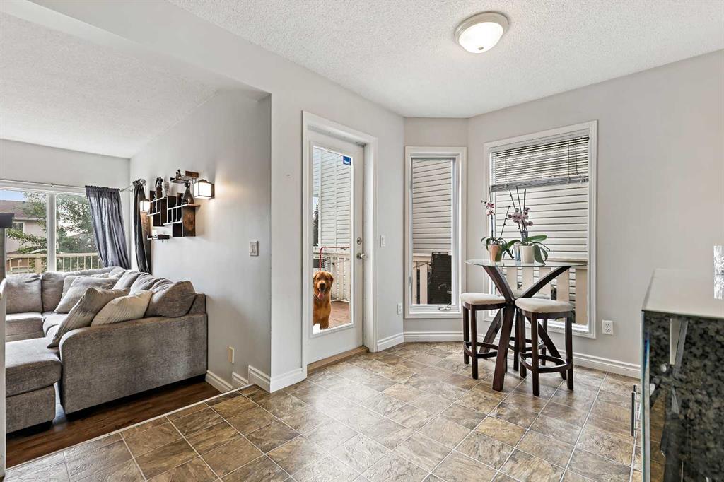 Welcome to this beautifully finished 2-storey home in the highly sought-after, mature community of Millrise! With over 2,300 sq. ft. of developed living space, including four bedrooms and 2.5 baths, this home offers so much more than meets the eye. From the curb, it feels cozy and quaint, but step inside and you’ll be greeted by a dramatic open-to-above foyer with nearly 17-foot ceilings and a 12-foot vaulted living room that immediately sets the tone. The front living room is bathed in natural light through its oversized window and flows seamlessly into the spacious formal dining area – perfect for hosting holiday dinners or family celebrations. The heart of the home is the upgraded kitchen, featuring granite countertops, a stylish glass tile backsplash, abundant cabinetry, and sleek stainless steel/black appliances. A bright breakfast nook overlooks the large backyard and flows into the sunken family room, where a timeless wood-burning fireplace with tile surround and wooden mantle creates the perfect gathering place for cozy evenings. A convenient main floor laundry room with side entry and a well-placed half bath complete this level. Upstairs, you’ll find three generously sized bedrooms, including a large primary suite with walk-in closet and pocket door access to the full four-piece bath with jetted soaker tub, full tile surround, and separate shower. The fully finished basement offers a private retreat for teens or guests with a fourth bedroom featuring a huge walk-in closet and its own full bathroom. There’s also plenty of open space for a media area, home gym, or games room – you decide! Step outside and enjoy the expansive backyard with huge deck, fire pit, and room to build your dream garage. The stucco exterior adds to the home’s charm while keeping maintenance low. Located on a quiet street in a mature neighborhood, you’ll love being just minutes away from Fish Creek Park, multiple schools, parks, Shawnessy shopping, restaurants, YMCA, and quick access to Stoney Trail and Macleod Trail. This is affordable homeownership in one of Calgary’s most family-friendly communities – offering space, function, and style all in one package.